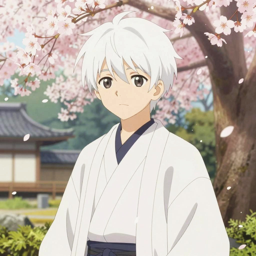 Cool black anime boy dreads sitting under cherry blossom trees, calm and contemplative expression, traditional japanese attire with modern twist, soft pastel colors, anime manga style