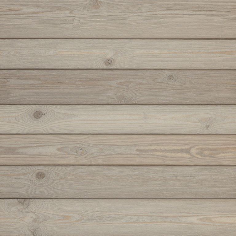 Photograph of weathered, light gray wooden planks with visible grain, knots, and subtle pinkish hues, arranged horizontally.