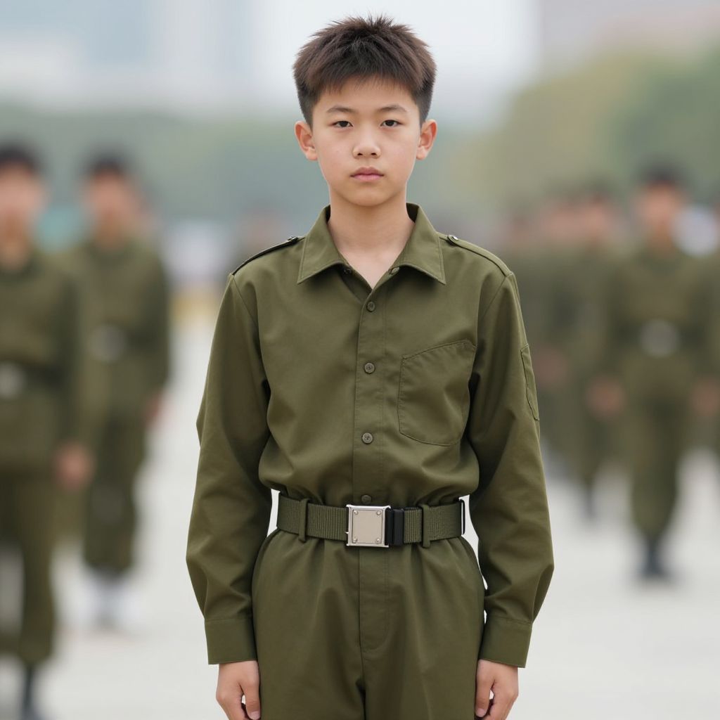 Young Boy in Blue Military Uniform