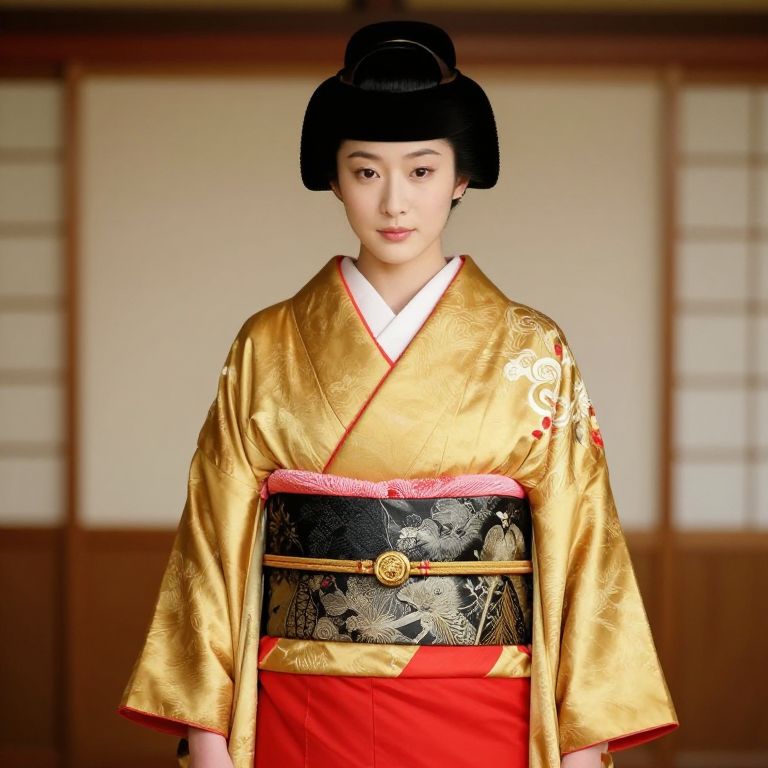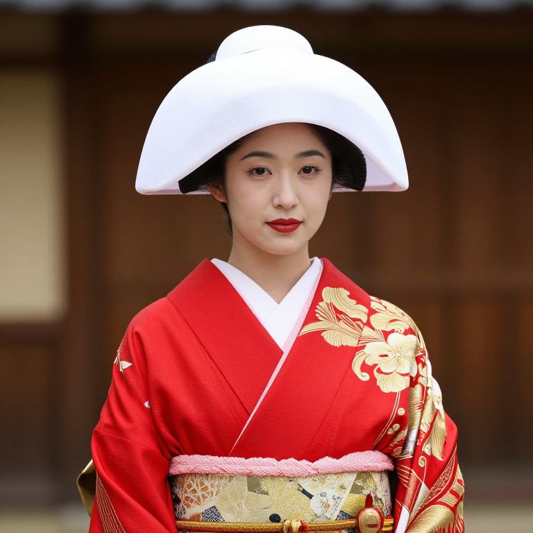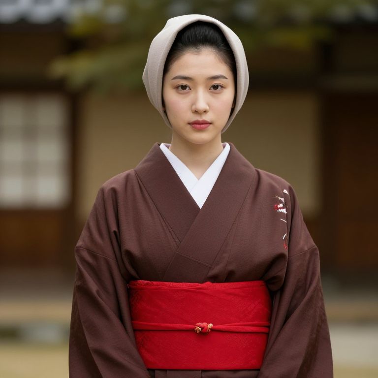Woman in Red and White Kimono