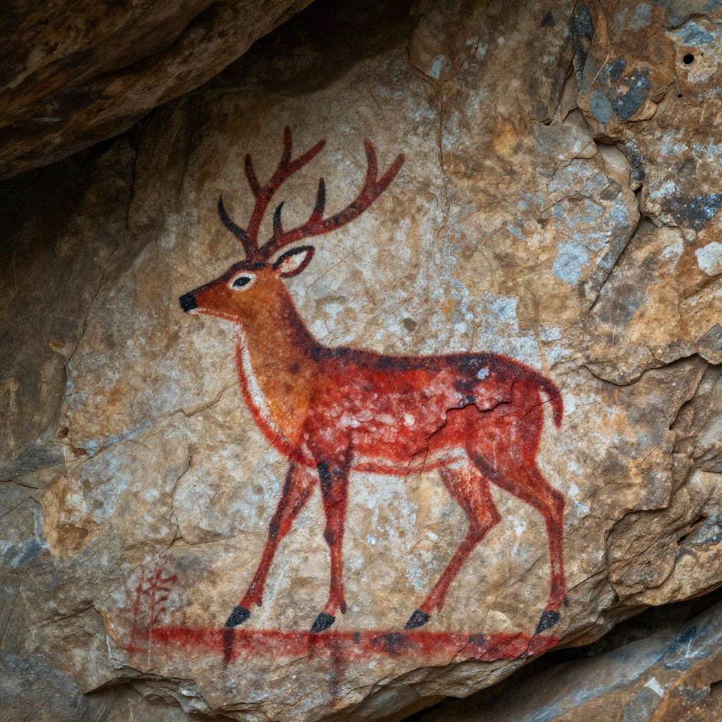 Vibrant Tribal Deer Cave Painting