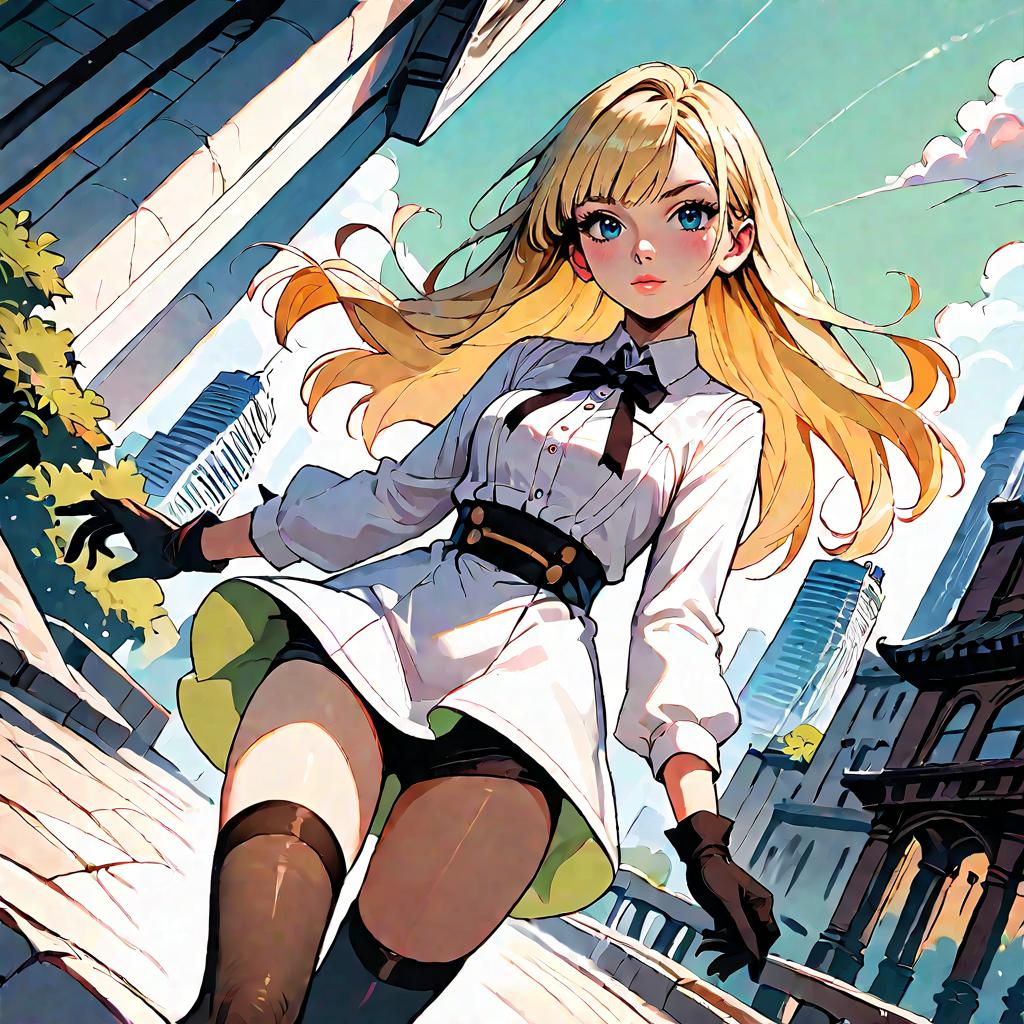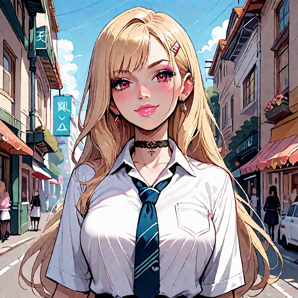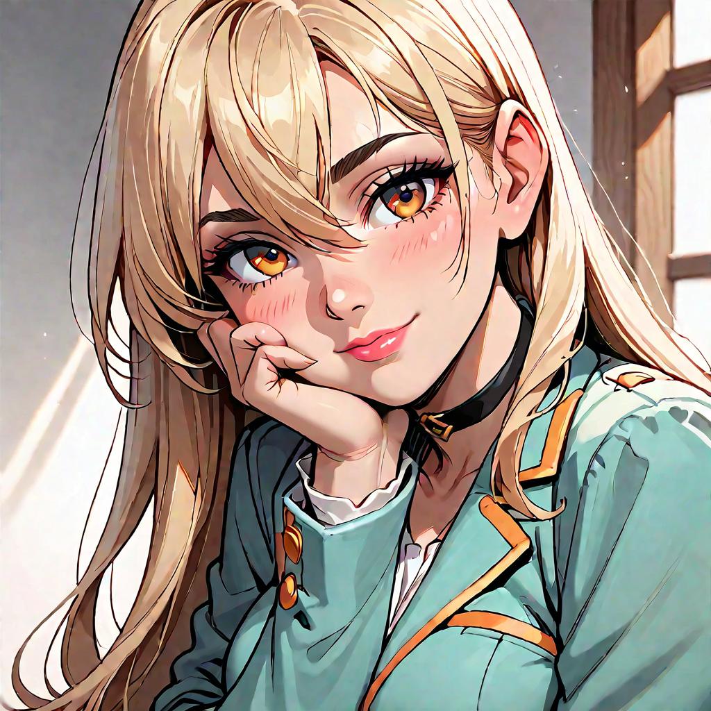 Anime Girl with Blonde Hair and Black Ribbon