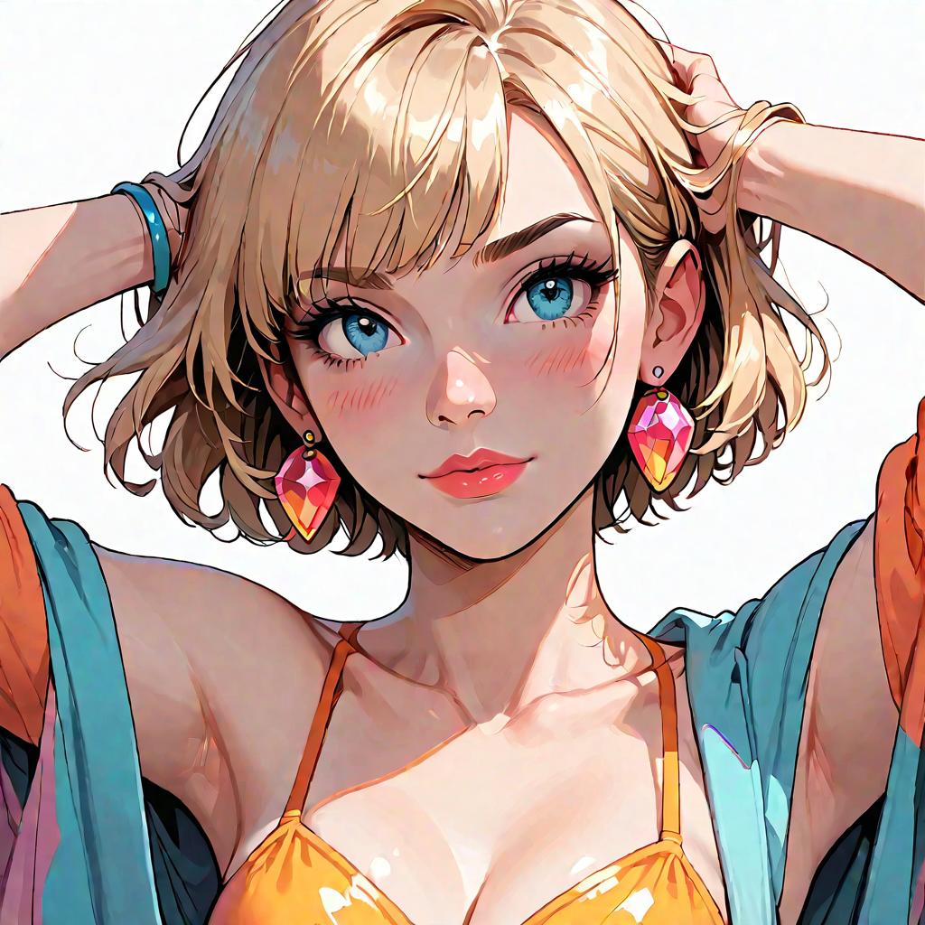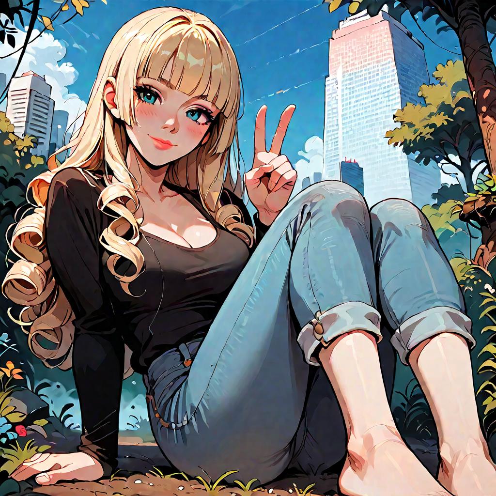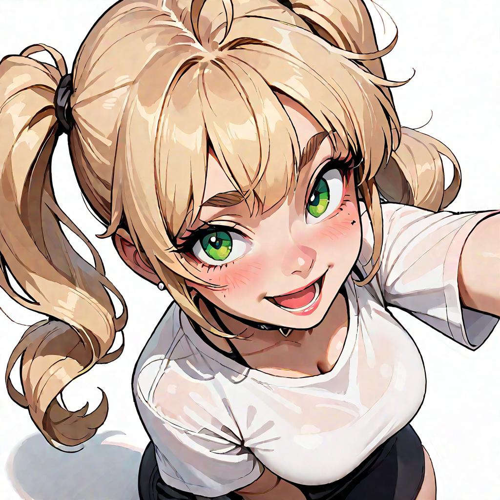 Anime Girl with Blonde Hair and Black Ribbon