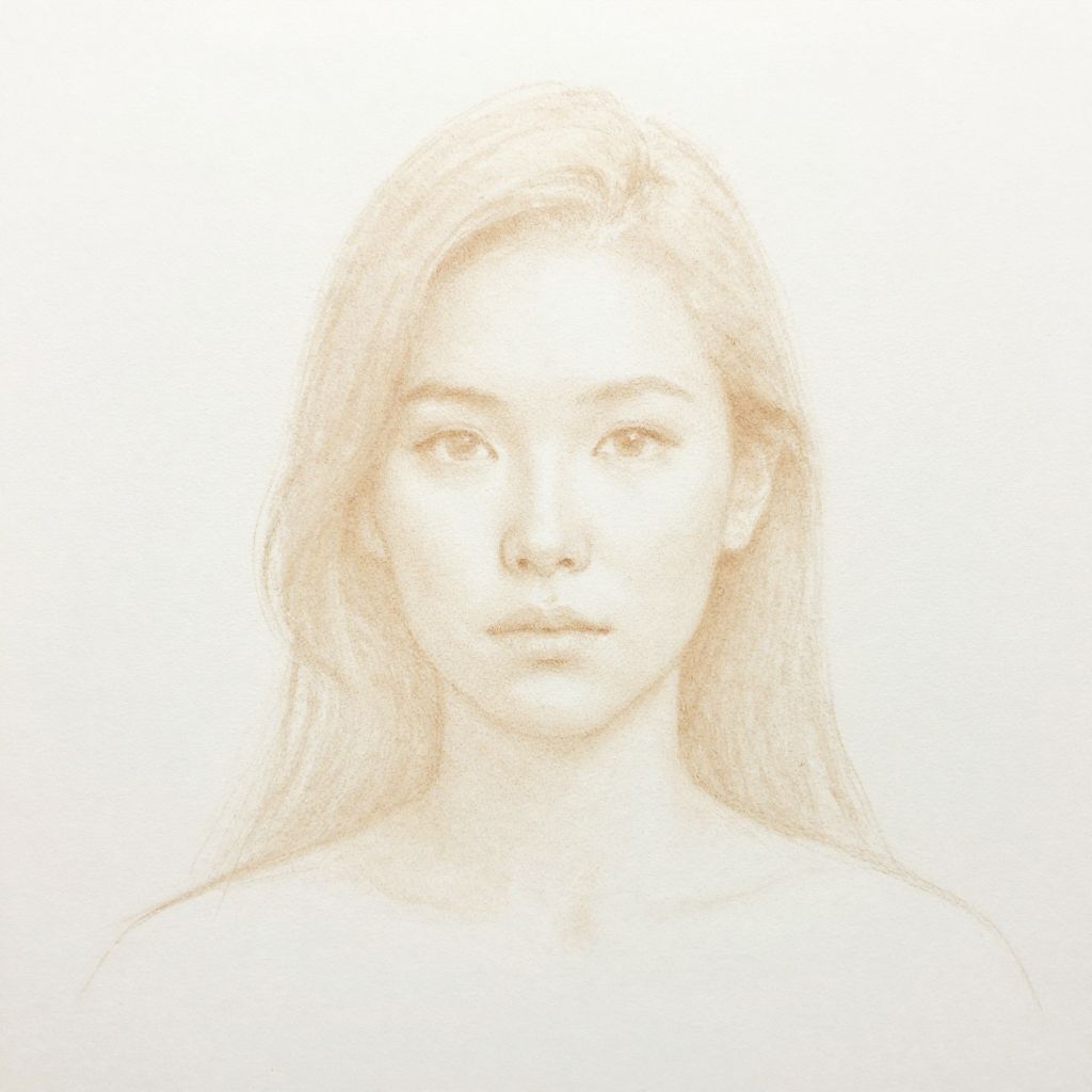 Modeling Photoshoot A background made of light charcoal, with the subtle emergence of a girls face; 90% amorphous background on white paper, visible grain. A foundation for drawing,