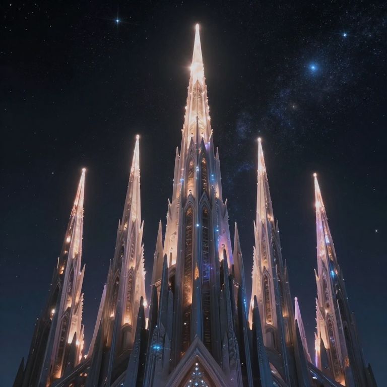 Ethereal Cosmic Spires Under Starlight