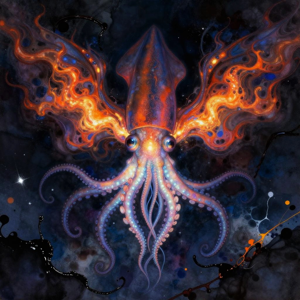 Magic realism masterpiece, shadow manta ray totem, velvet black wings with subtle blue veins, bioluminescence, fire wings, twilight, splash art, alcohol ink, intricately detailed, sharp focus, extremely detailed, dark fantasy, colorful painting, HDR, octane render, digital illustration, cinematic light