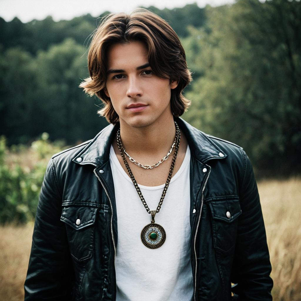 Last second costume guy,1boy, solo, male focus, realistic, jacket, jewelry, shirt, looking at viewer, red jacket, hood, open clothes, brown hair, necklace, upper body, open jacket, closed mouth, brown eyes, white shirt, short hair