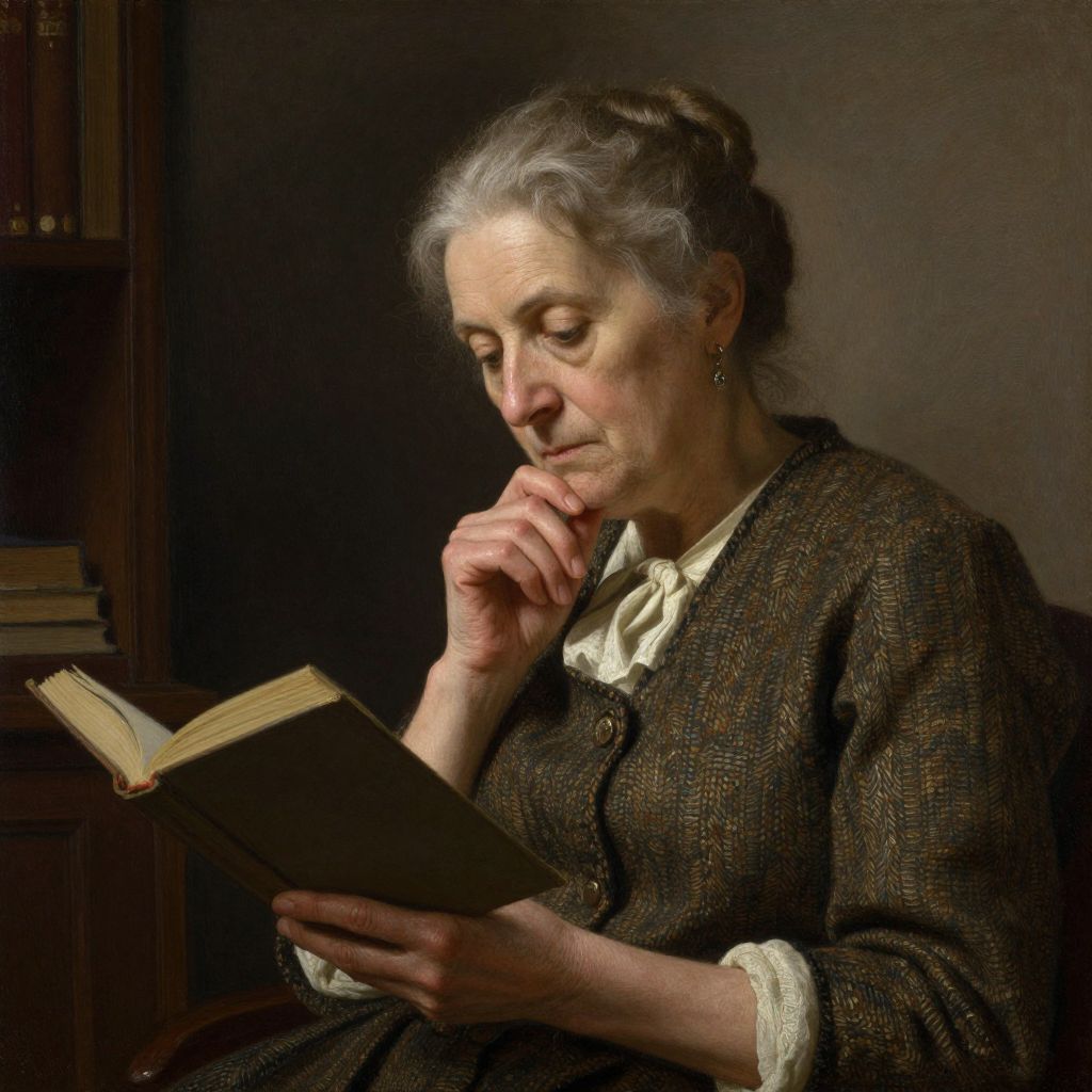 Classical Portrait of Elderly Woman Reading