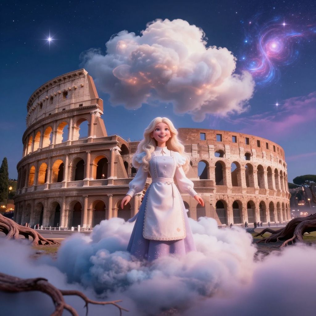 Tv_Alexandra_MXAI, detailed Raw digital photo, Wizardcore, hyper detailed, extreme wide shot of a Celestial Cloudy ([Armadillo:Apron:2]:1.3), Tactile The Colosseum of Rome in background, desolate roots and Supernova in background, at Nighttime, equirectangular 360, (stylized by David Mould:1.1), Realistic, Happy, soft light, Long exposure, Lomography Color 100, 35mm, Film Washi, Light sparkles, bloom, beautiful, trending on CGSociety, sparkling, cheerful, intricate