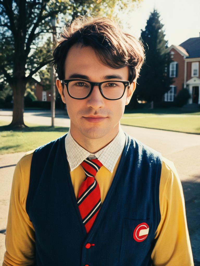 Man in Nerd Costume, photorealistic outdoor portrait at daylight --sref 1388