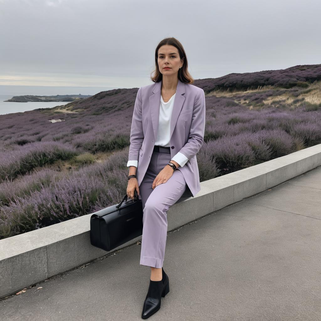Elegant Woman in Dusty Lavender Suit by Coastal Viewpoint