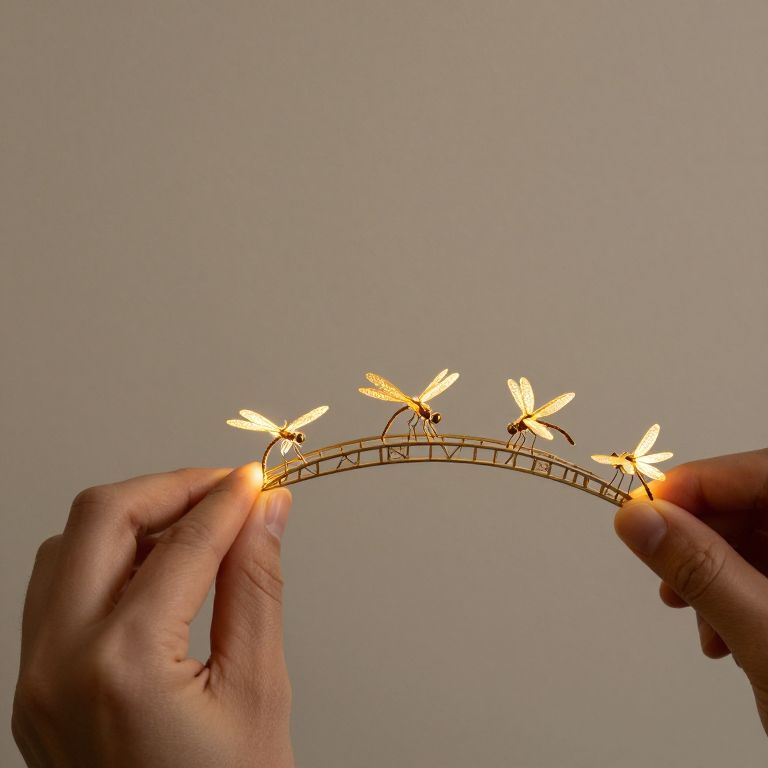 A clockwork dragonflies colony meticulously constructs a bridge between time zones, stitching moments together with golden light.