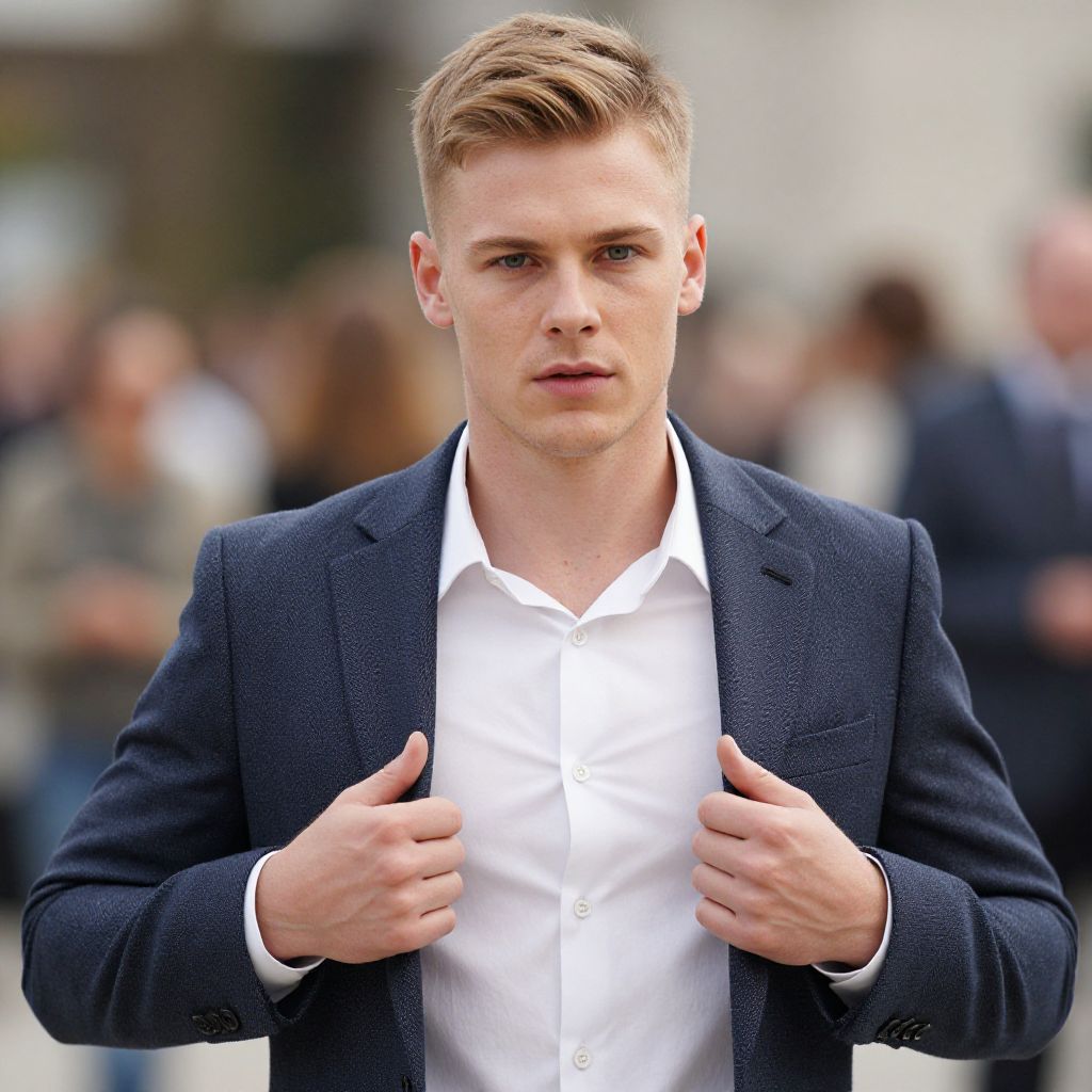 Realistic Blonde Male in Open Jacket