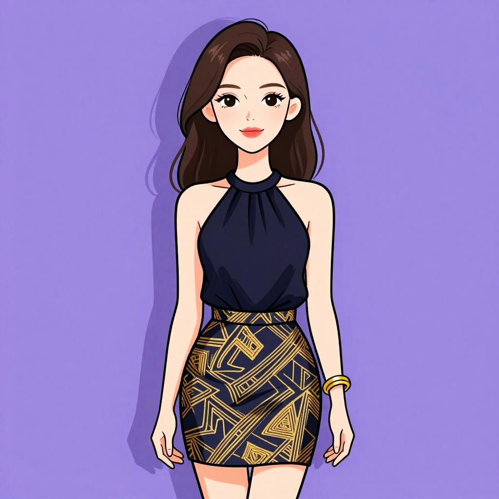 Chic Woman in Black and Gold Dress