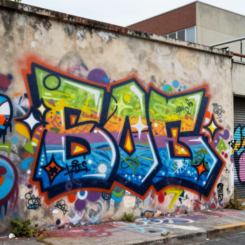 Noname graffiti art on urban wall, colorful spray paint textures, street art style with bold outlines, dynamic composition, city background, youthful and rebellious vibe