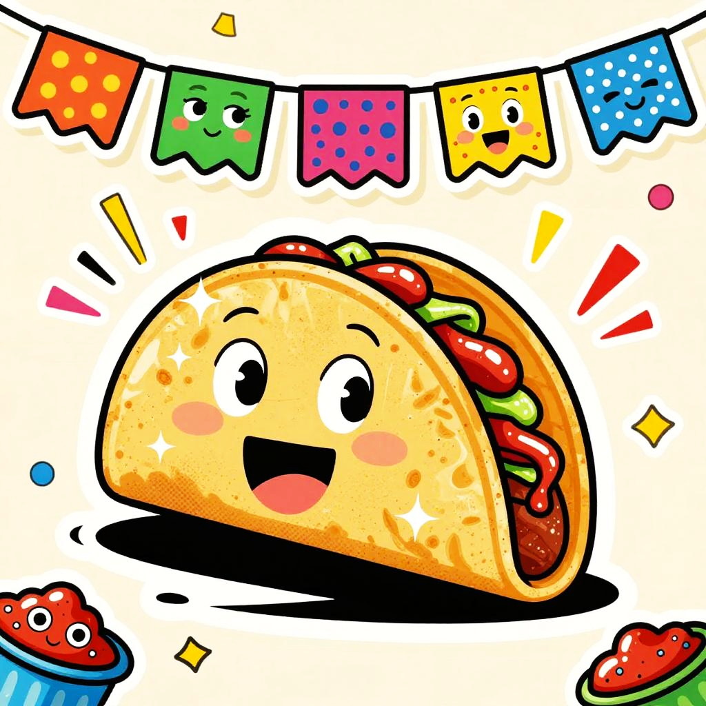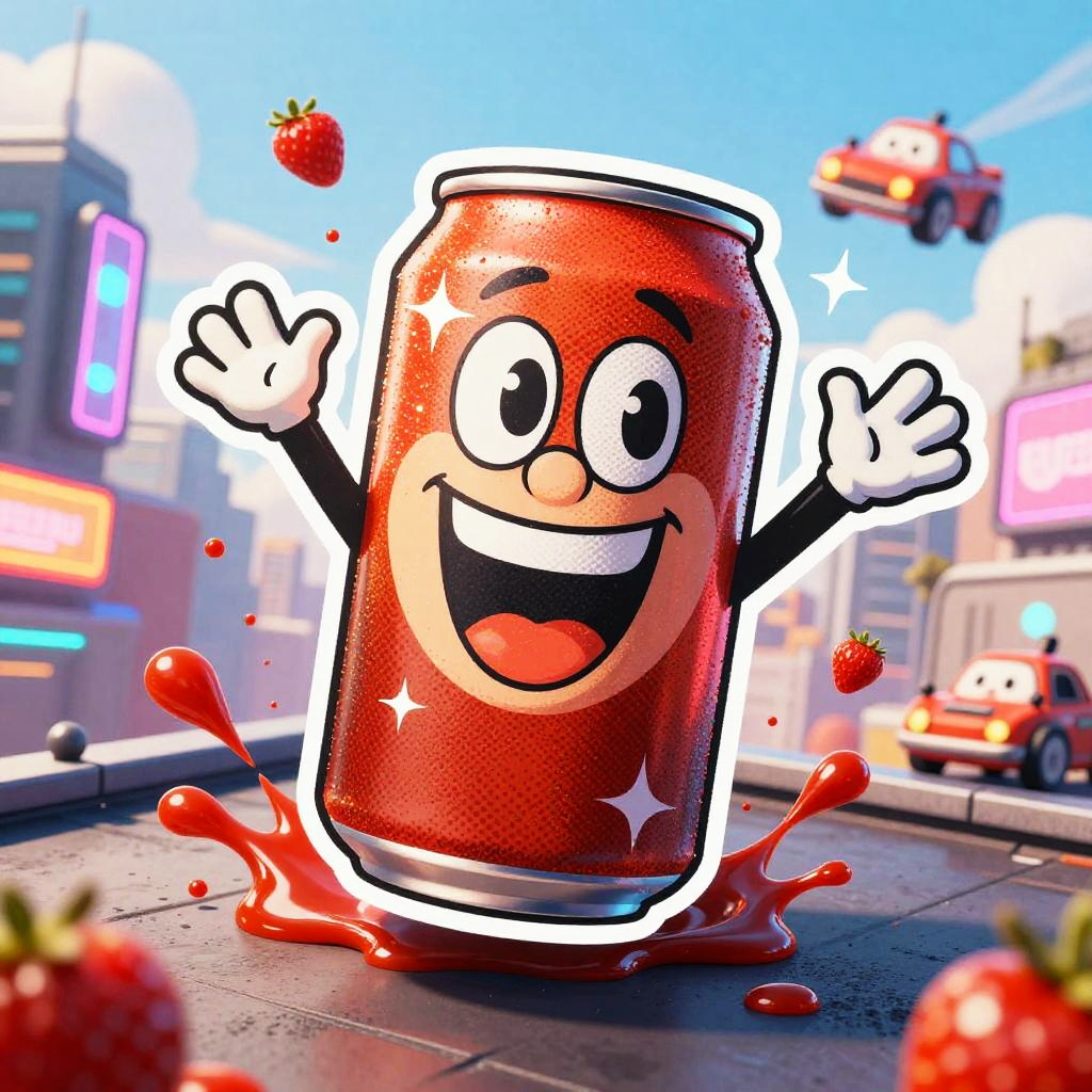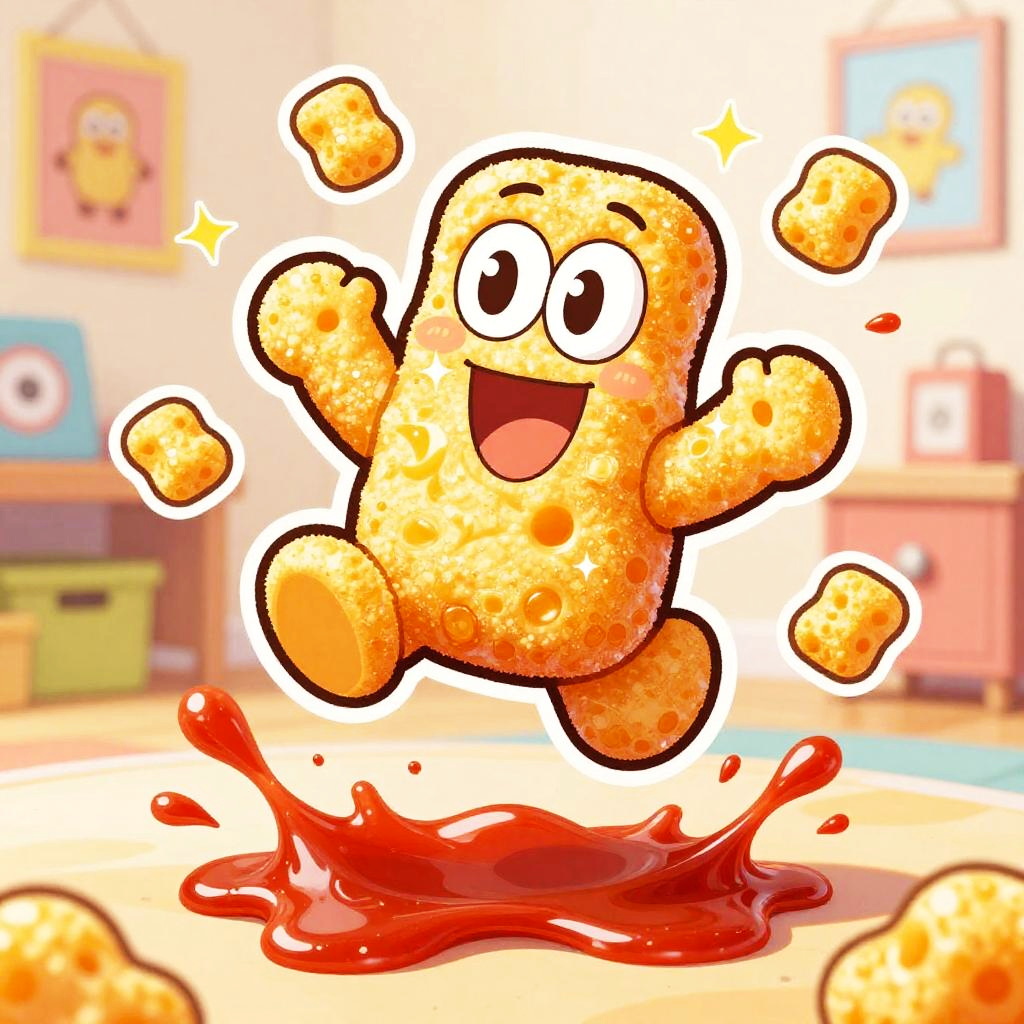 Cartoon quirky cupcake characters topping themselves with frosting, exaggerated crispy texture with sparkling highlights, set in festive party room with balloons and streamers, ketchup-like splashes and motion lines, cheeky mascot accents, bold shapes, dynamic perspective, centered hero, sticker aesthetic, subtle paper grain, glossy highlights, halftone shadows, lively comic energy, poster-ready illustration, playful line art, bright shadows, high saturation colors