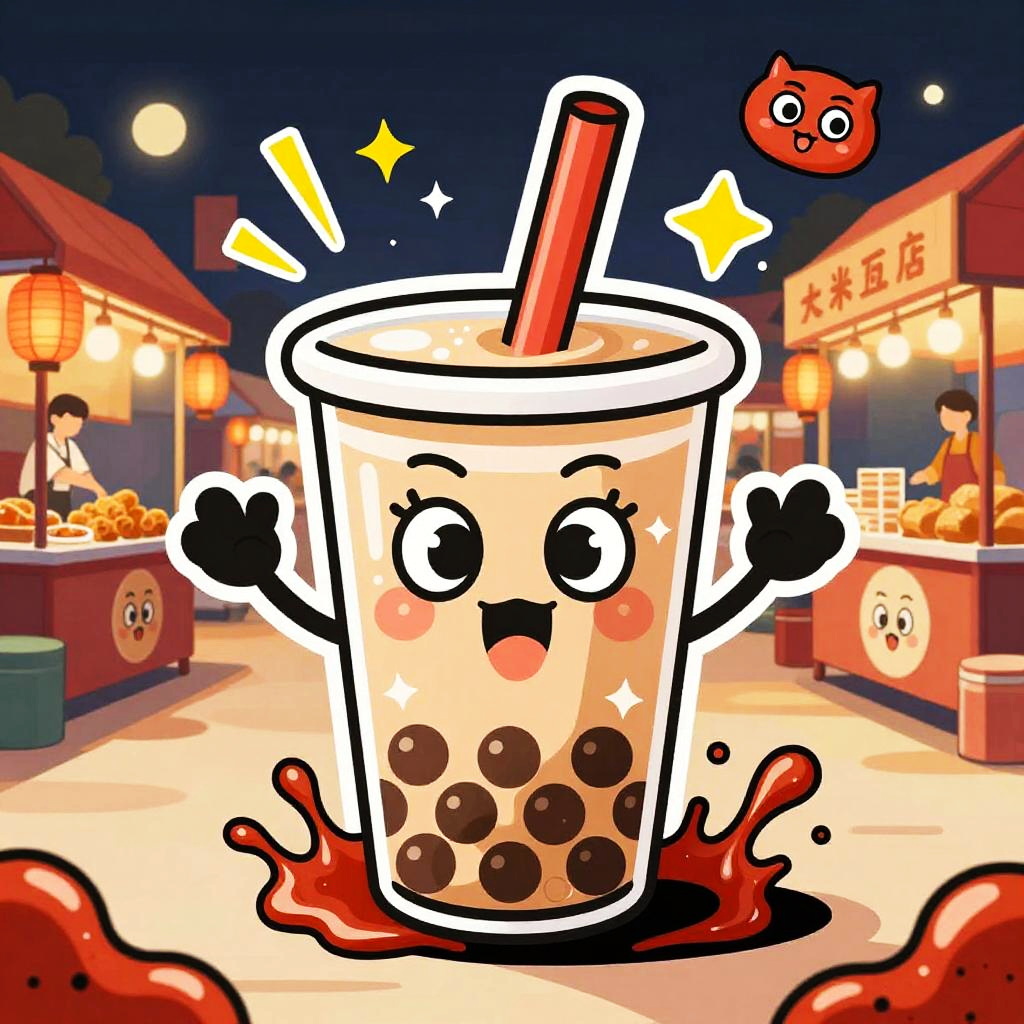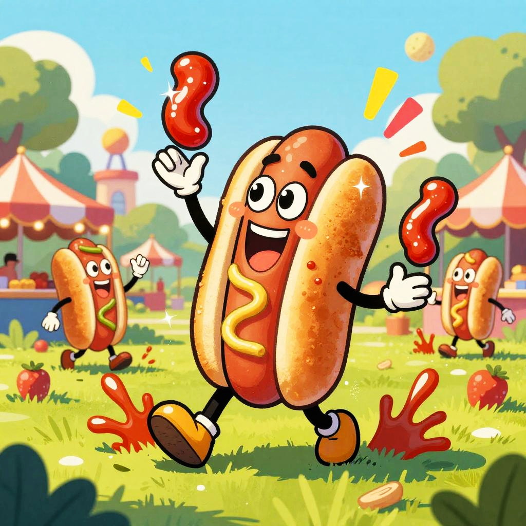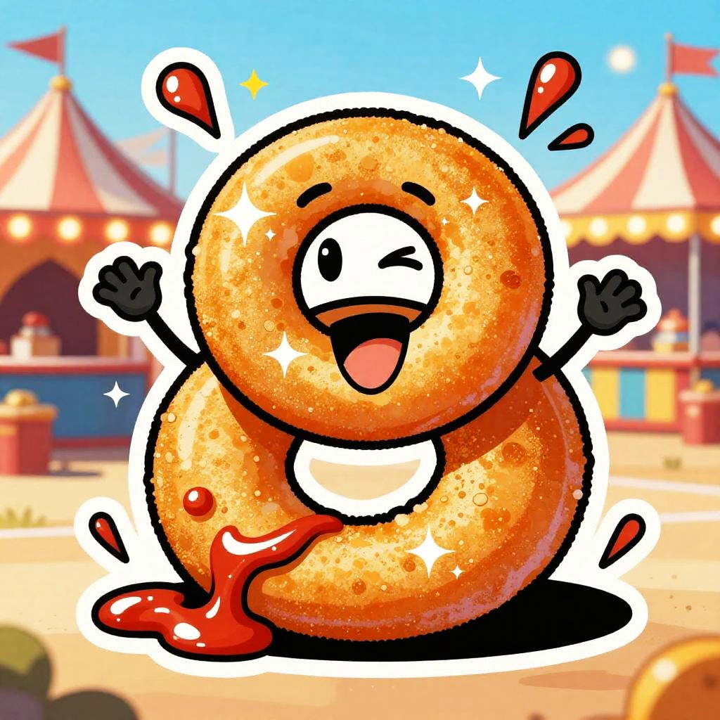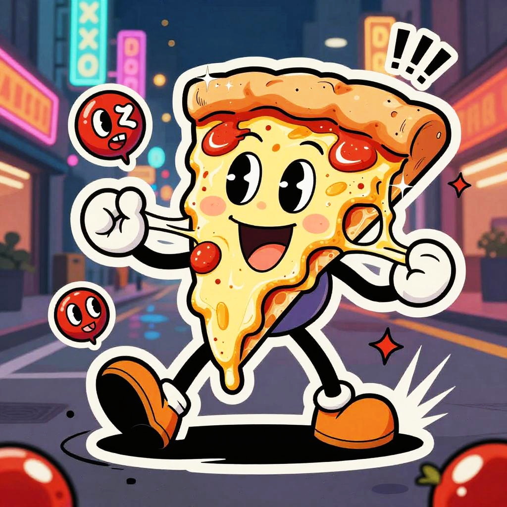 Cartoon quirky cupcake characters topping themselves with frosting, exaggerated crispy texture with sparkling highlights, set in festive party room with balloons and streamers, ketchup-like splashes and motion lines, cheeky mascot accents, bold shapes, dynamic perspective, centered hero, sticker aesthetic, subtle paper grain, glossy highlights, halftone shadows, lively comic energy, poster-ready illustration, playful line art, bright shadows, high saturation colors