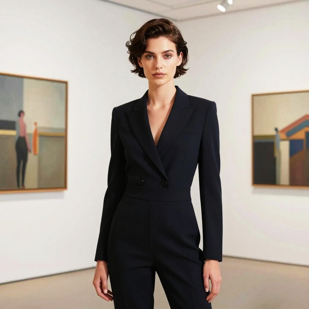 Gelled Hair hairstyle on female model, wearing sleek evening gown, in luxury penthouse, captured in fashion editorial style with glossy reflection.