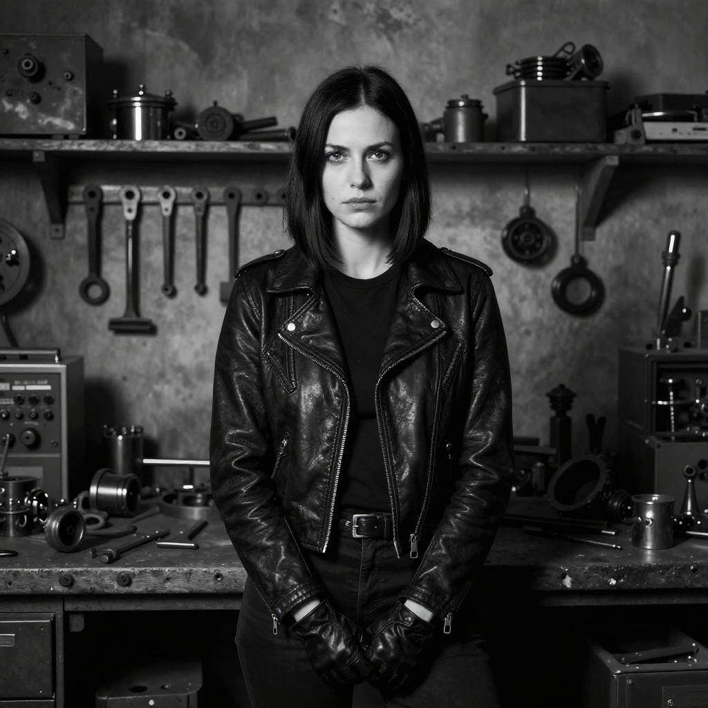 Ui Design A confident alpha businesswoman standing in front of a brick wall with graffiti art, wearing a white blouse, black pants, and red heels, with dramatic lighting from above.,