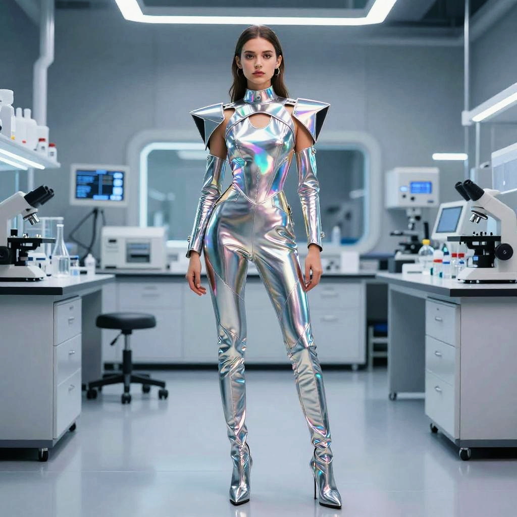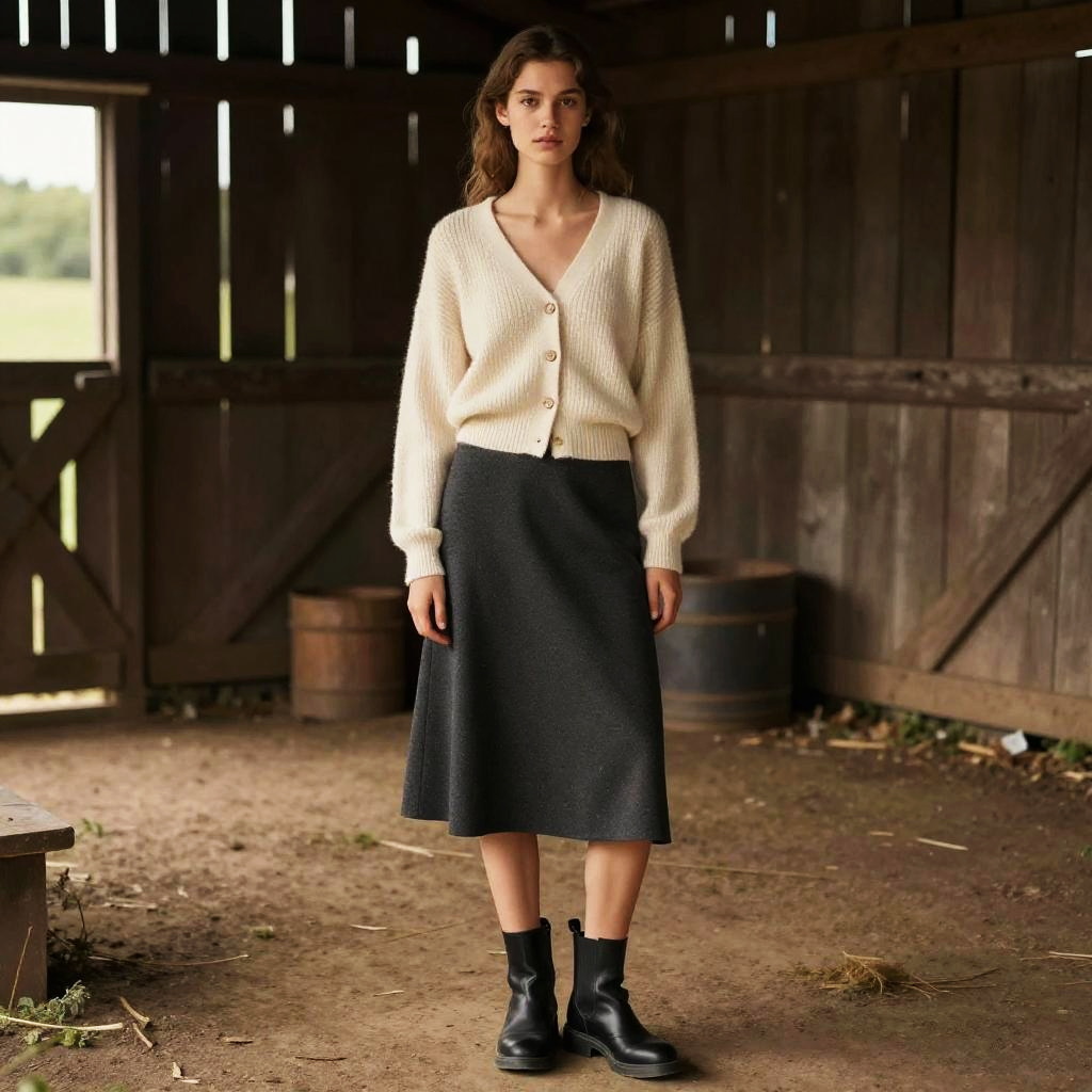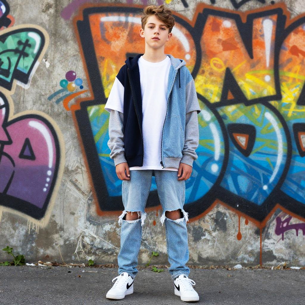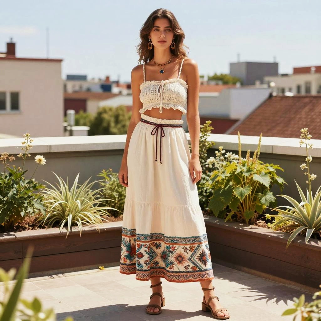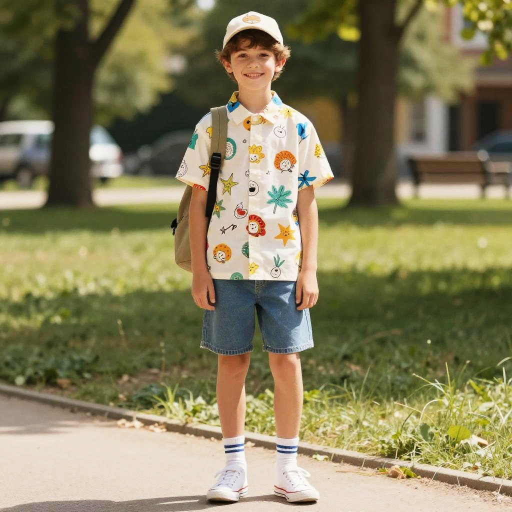 Full-length fashion-forward portrayal of a child girl in fairytale inspired dresses styled by Lotta Volkova, standing in an enchanted forest clearing, with magical and playful styling.