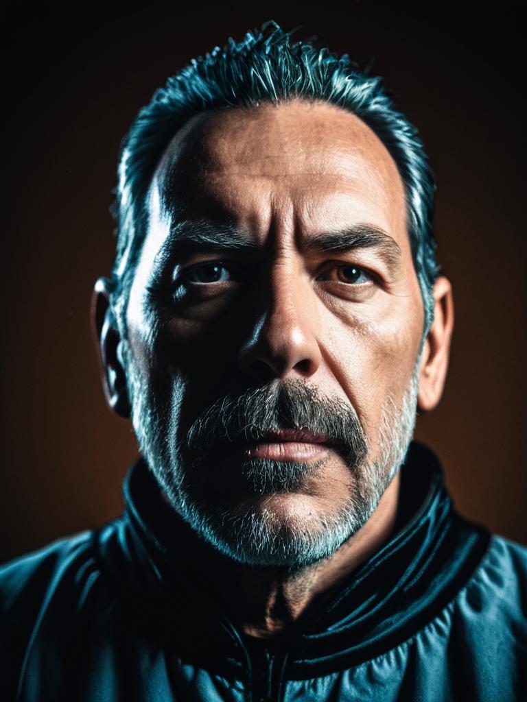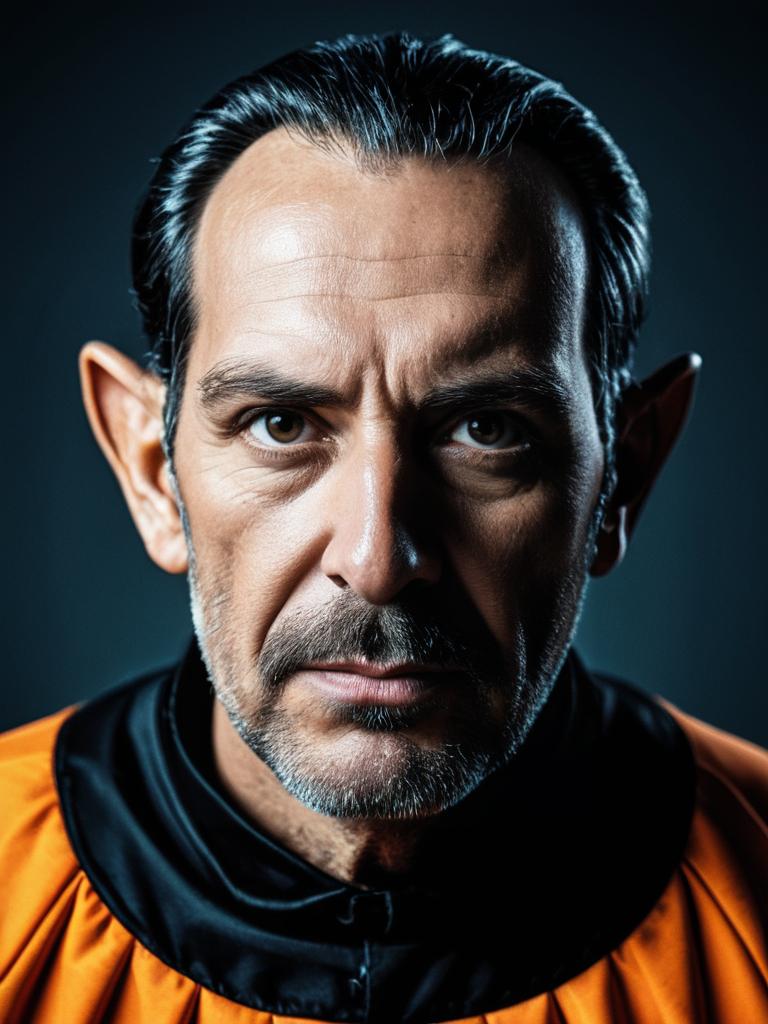 Man in Cartoon Halloween costume, photorealistic close-up headshot