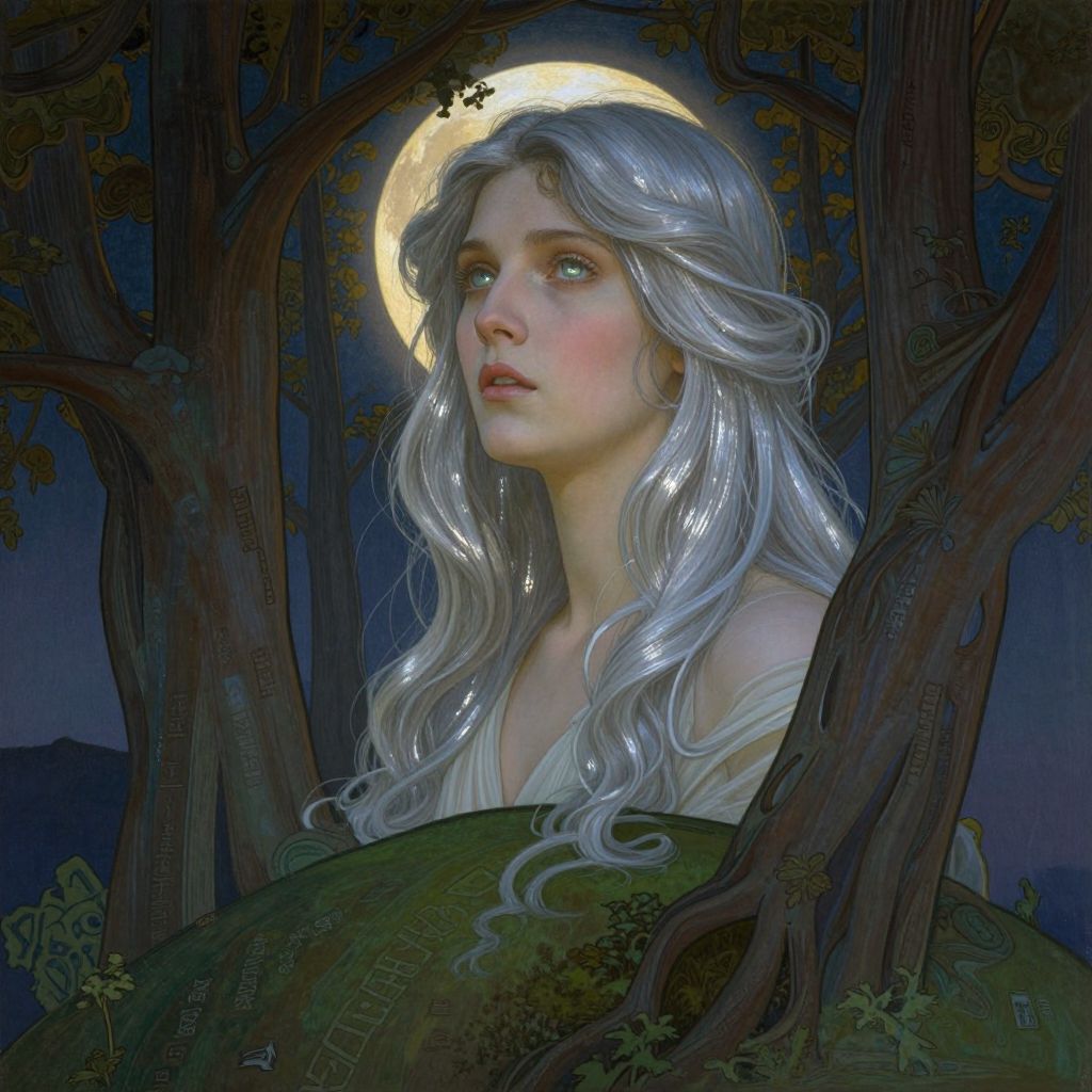 Envision a mesmerizing portrait in the ethereal style reminiscent of Pre-Raphaelite art, portraying a spectral figure draped in flowing, translucent fabrics. This phantom-like woman arises from a hazy, nebulous terrain akin to Turner's romantic seascapes, her pale visage bathed in an unearthly radiance emanating from a luminous sphere clutched in her hand. As the scene unfurls through a 'bug's-eye view' perspective, the atmosphere transitions from enigmatic to awe-inspiring, revealing a realm where the supernatural and natural realms intermingle. This evocative image should inspire feelings of wonder, melancholy, and yearning for the unseen, merging elements of fantasy with the timeless allure of Pre-Raphaelite aesthetics.