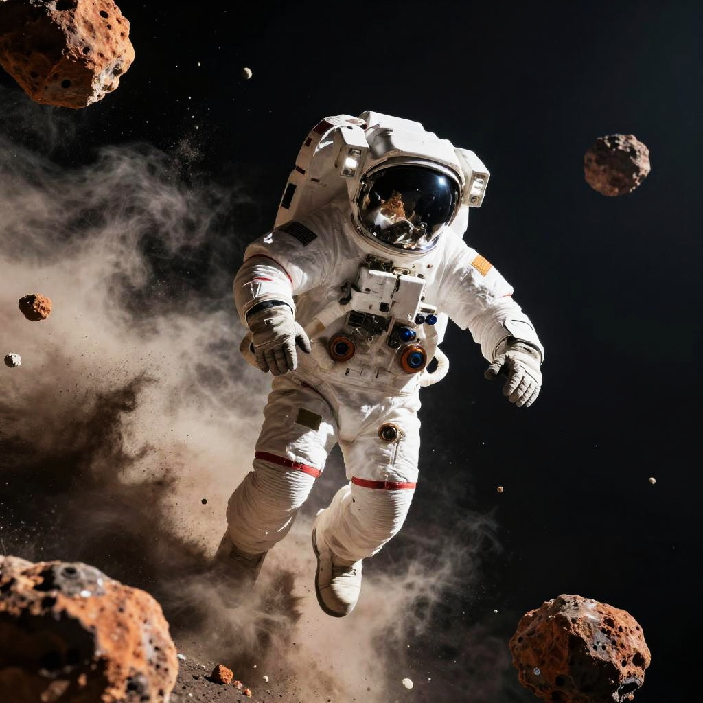 Astronaut Navigating Asteroid Field Near Io