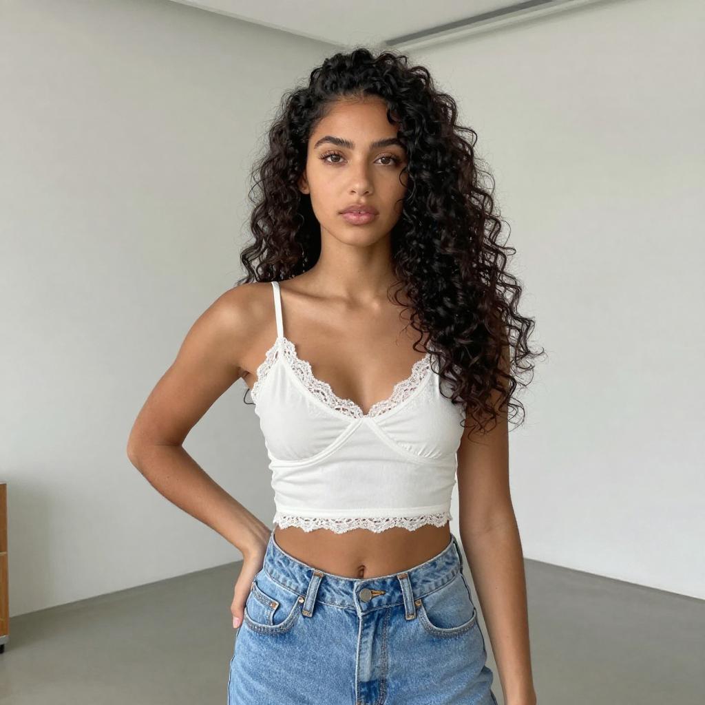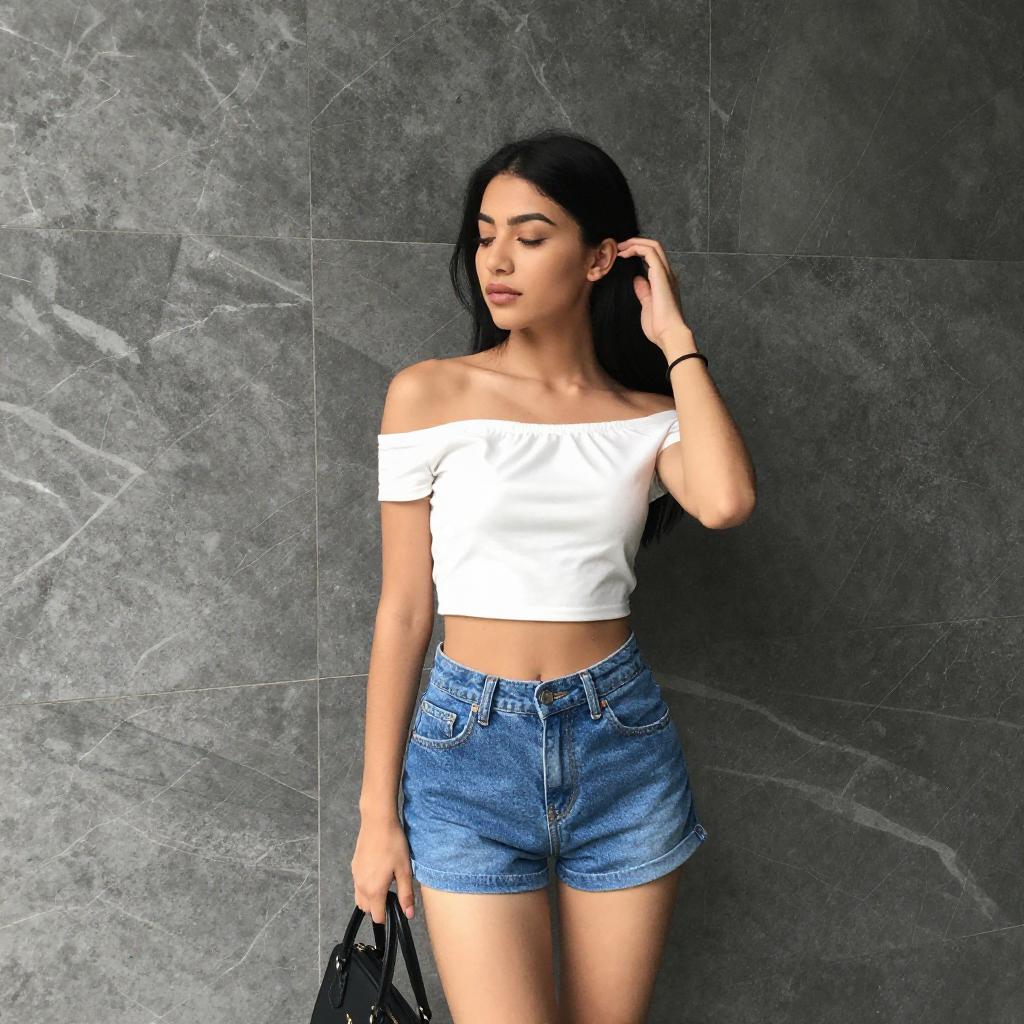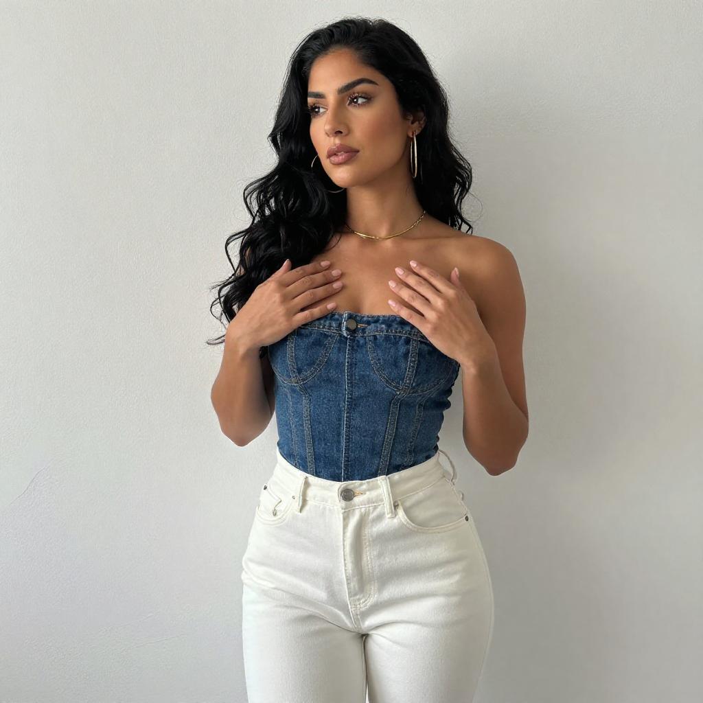 Young Woman in White Corset Outfit