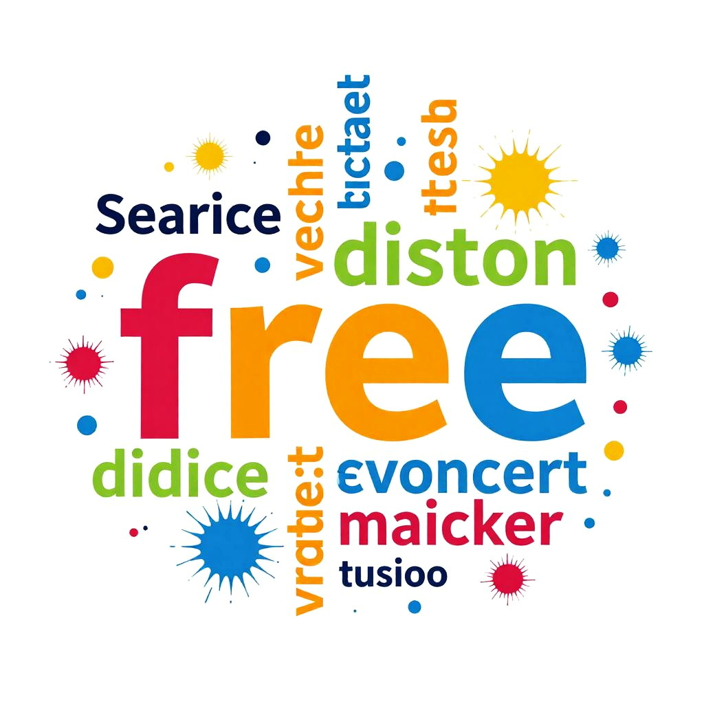 Free word art maker environment cloud of floating text elements in various fonts and styles, vivid color palette with smooth transitions, digital paint splashes decorating the scene, artistic and tech-inspired minimal background, immersive creative visual