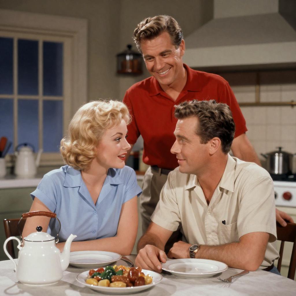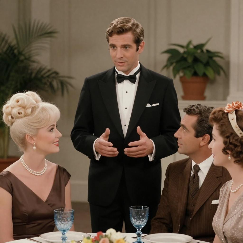 Movie poster with three people. Tom Ewell kneels in red robe with white feather, middle-aged, smiling. Fred Clarks stands in brown suit, black hat, serious expression. Mickey Rooney leans forward in blue robe, holding suitcase, intense smile. Background: green wall, wall sconce, door. Bright colors, mid-20th century style.
