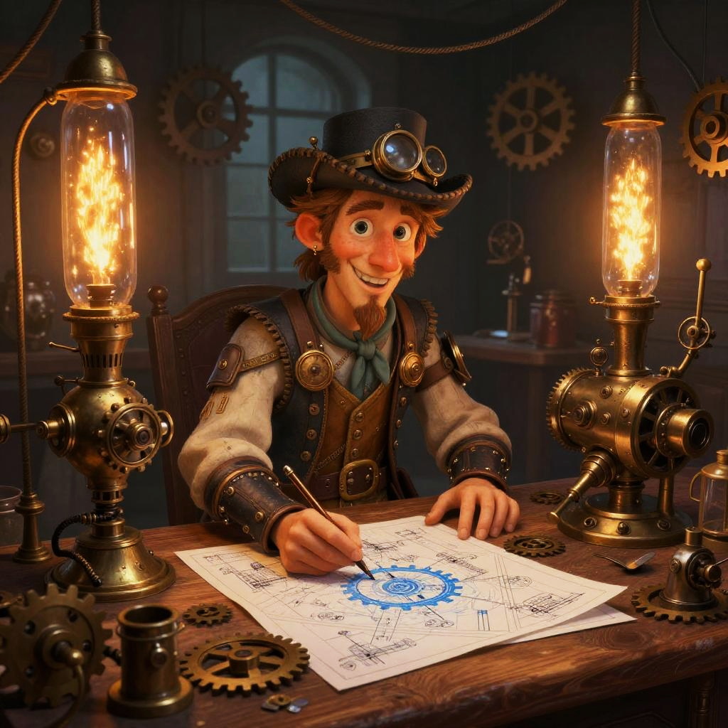 Whimsical Steampunk Inventor's Workshop
