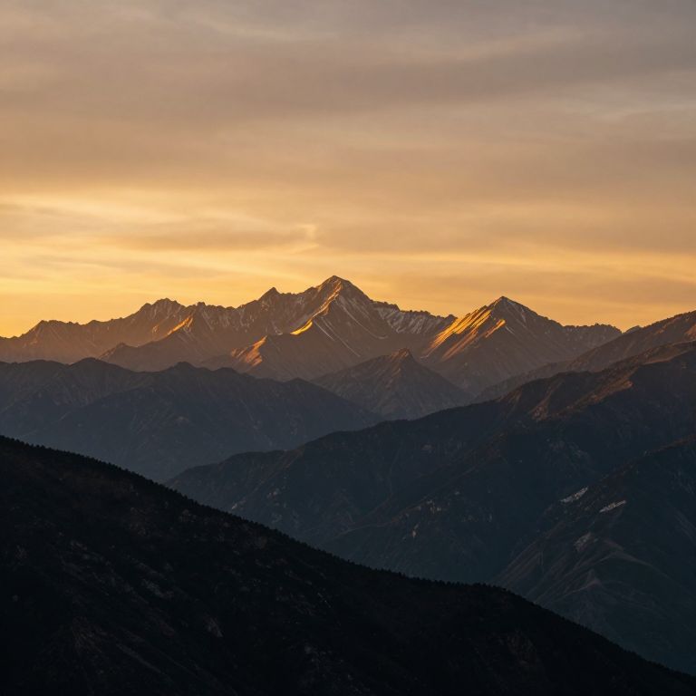 Serenity unfolds beneath the golden embrace of the setting sun, as mountains stand as silent witnesses to the transient beauty of time, their peaks bathed in hues of hope and reflection.