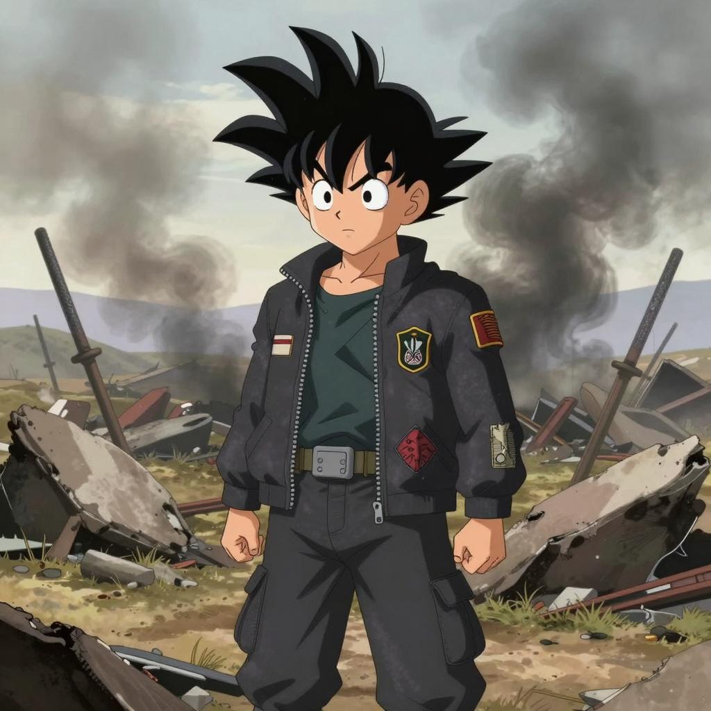 Digital illustration of two anime characters. Male with spiky black hair, green tracksuit, white sneakers, arms crossed, intense expression. Female with blue hair in ponytail, blue denim jacket, white crop top, light blue jeans, white sneakers, hands on hips. Background with palm trees, orange car, and urban buildings. Both standing on cobblestone path.