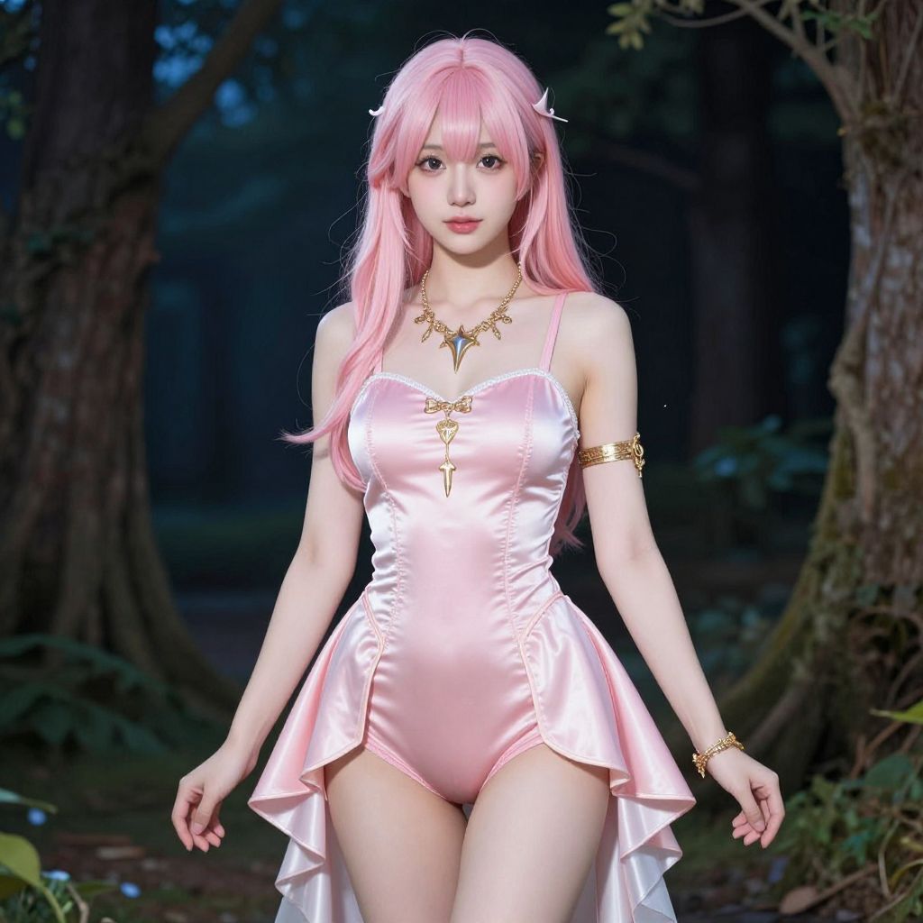 "Unicorn Rave Outfit, woman in pink costume with unicorn horn and pink hair"