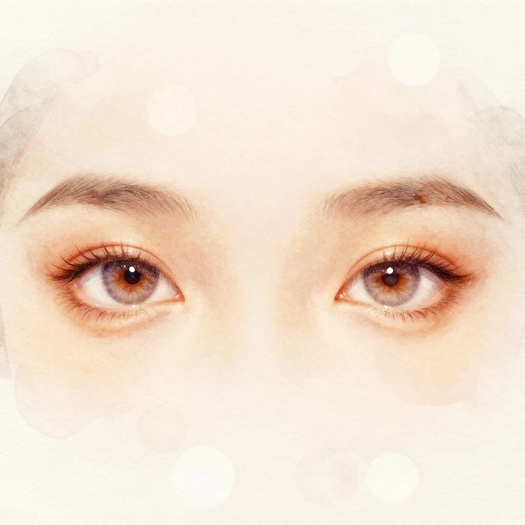 Ojos color almendra artistic interpretation of almond-shaped eyes using soft watercolor textures, warm earth tones blending with light bokehs, dreamlike composition, emphasizing emotional depth and natural beauty in a minimalist style