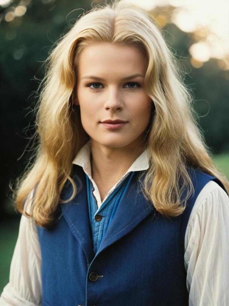 Kid Sir Isaac Newton, man with long blonde hair and a blue vest --sref 1390