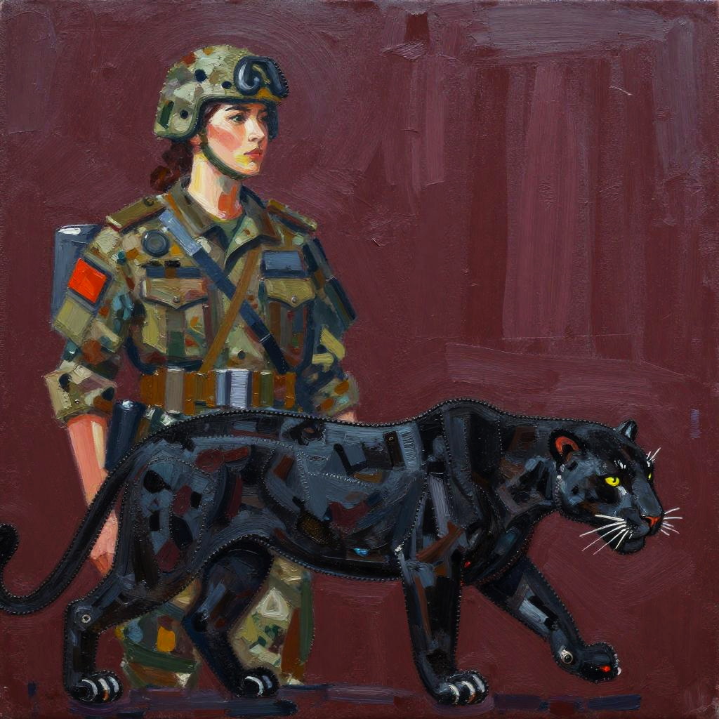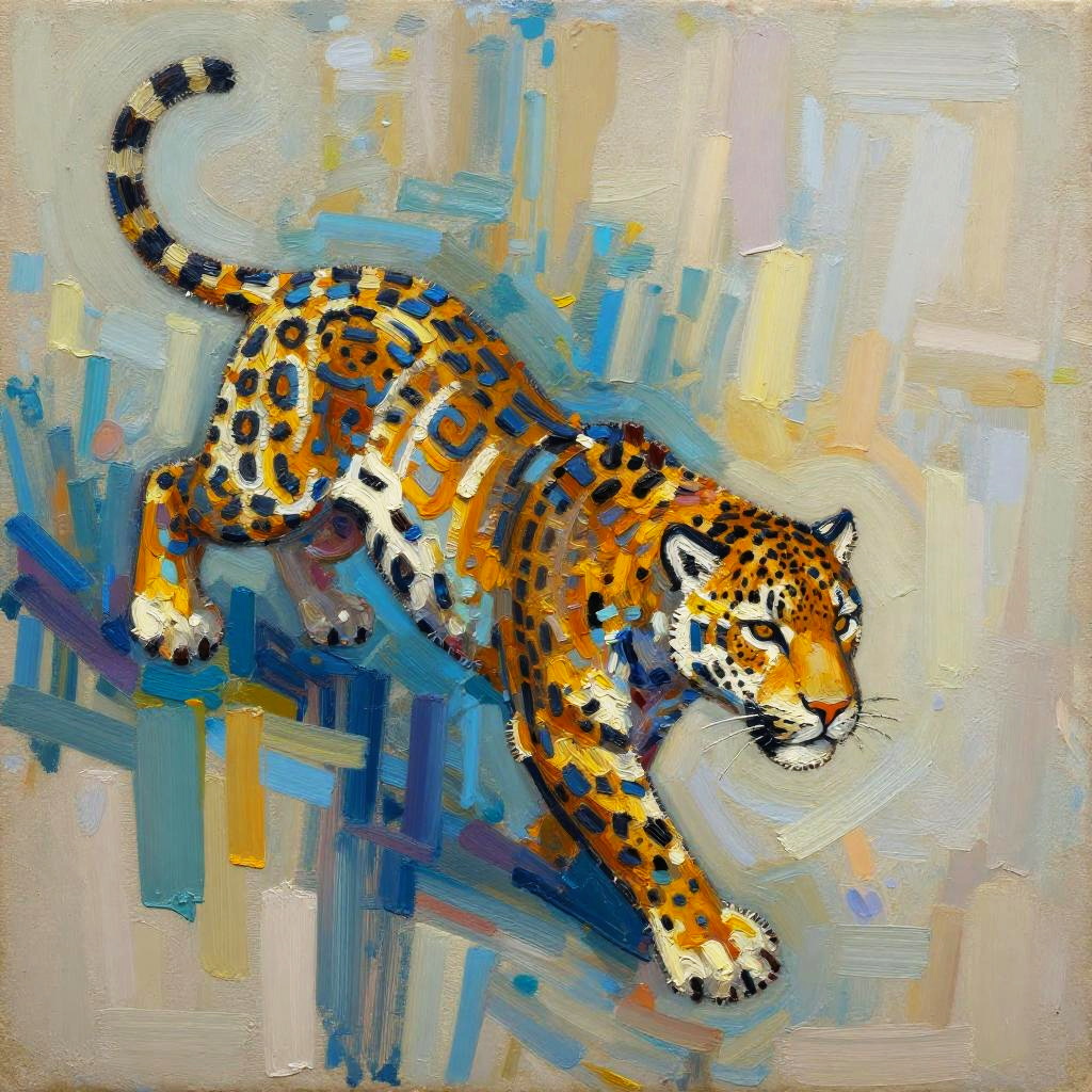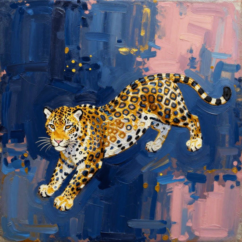 Embroidery Lace Abstract colorful oil painting of leopard movement queen with canvas texture. Hand drawn brush stroke, colourful painting, oil color paintings background. Modern art oil paintings with dominant navy and rose gold colour.