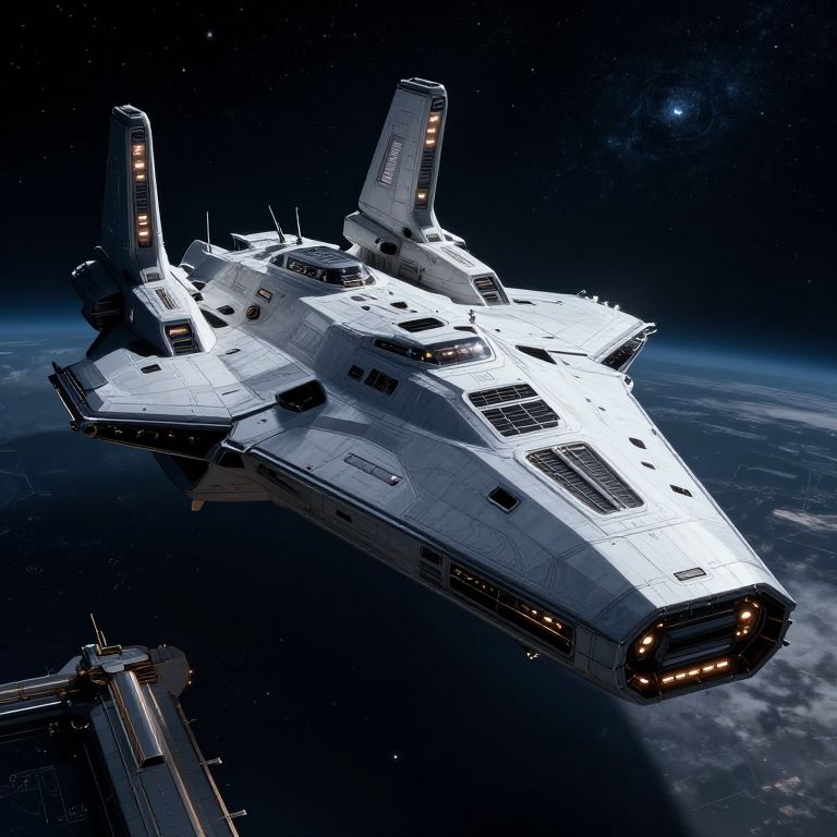 Futuristic Cruiser Docked at Space Station