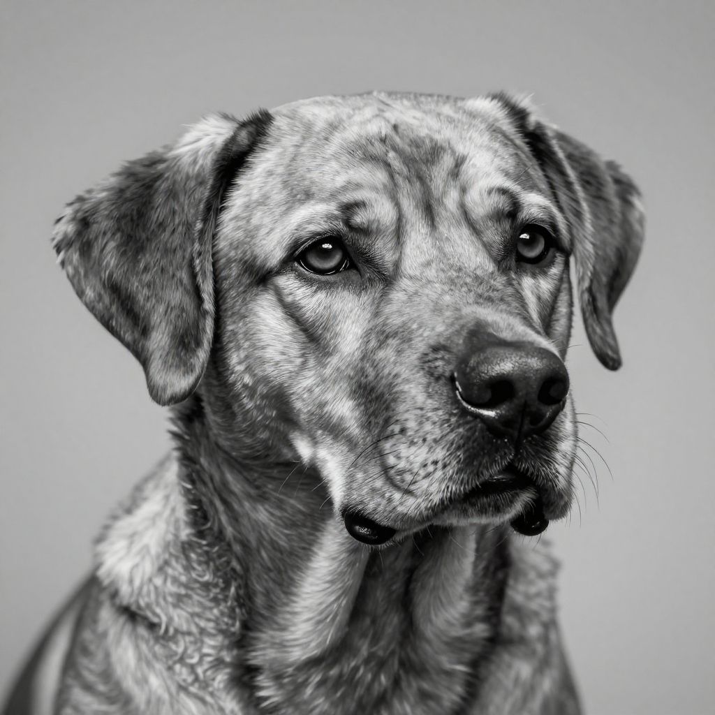 1dog, beautiful, radiant, (best quality, masterpiece), monochrome, highres, ultra high res, professional, realistic, hyper-realism, (photorealistic:1.4), vivid detail, absurdres, ultra detailed, extremely detailed, hyper detailed, intricately detailed, fine detail, HDR, UHD, 64K, simple background, natural lighting, Extreme Close-Up, Airbrushing