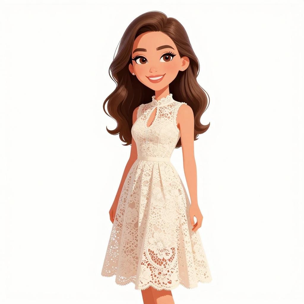 Woman with pretty face and pretty hair. smiling Woman, flirtatious cocktail style, dusty pink dress with sweetheart neckline, structured bodice, thin straps, knee-length tulle skirt with subtle gathers, chunky statement necklace with dark stones, smiling expression, studio backdrop with a plain white background. --sref 1467