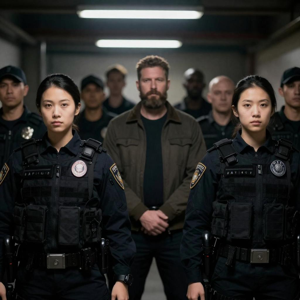 Police Officers in Dimly Lit Tactic Room