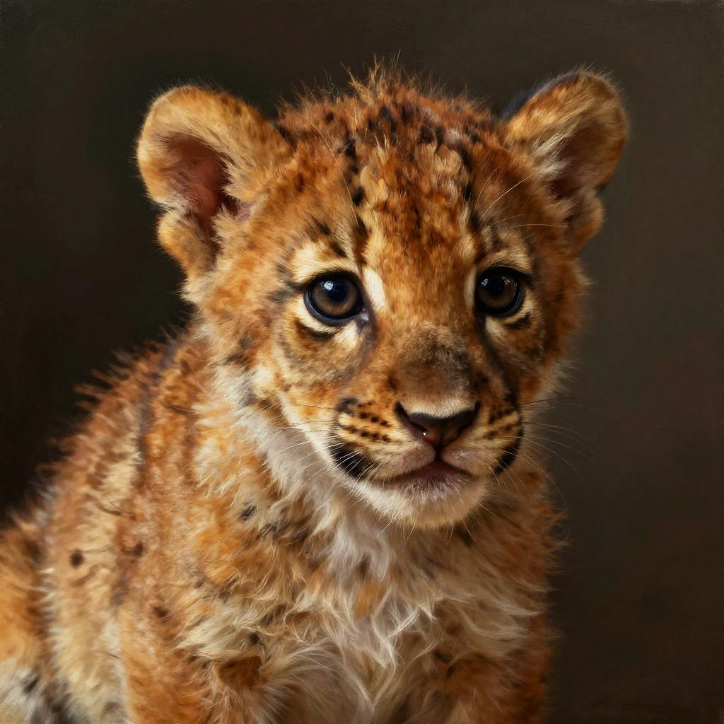 Young baby panda in an oil painting, hyper-realistic, high details, perfect eyes and fur, cute and fluffy with a lifelike appearance, soft lighting