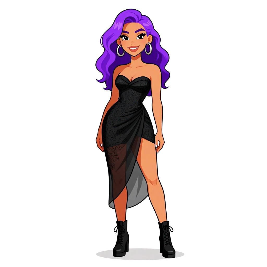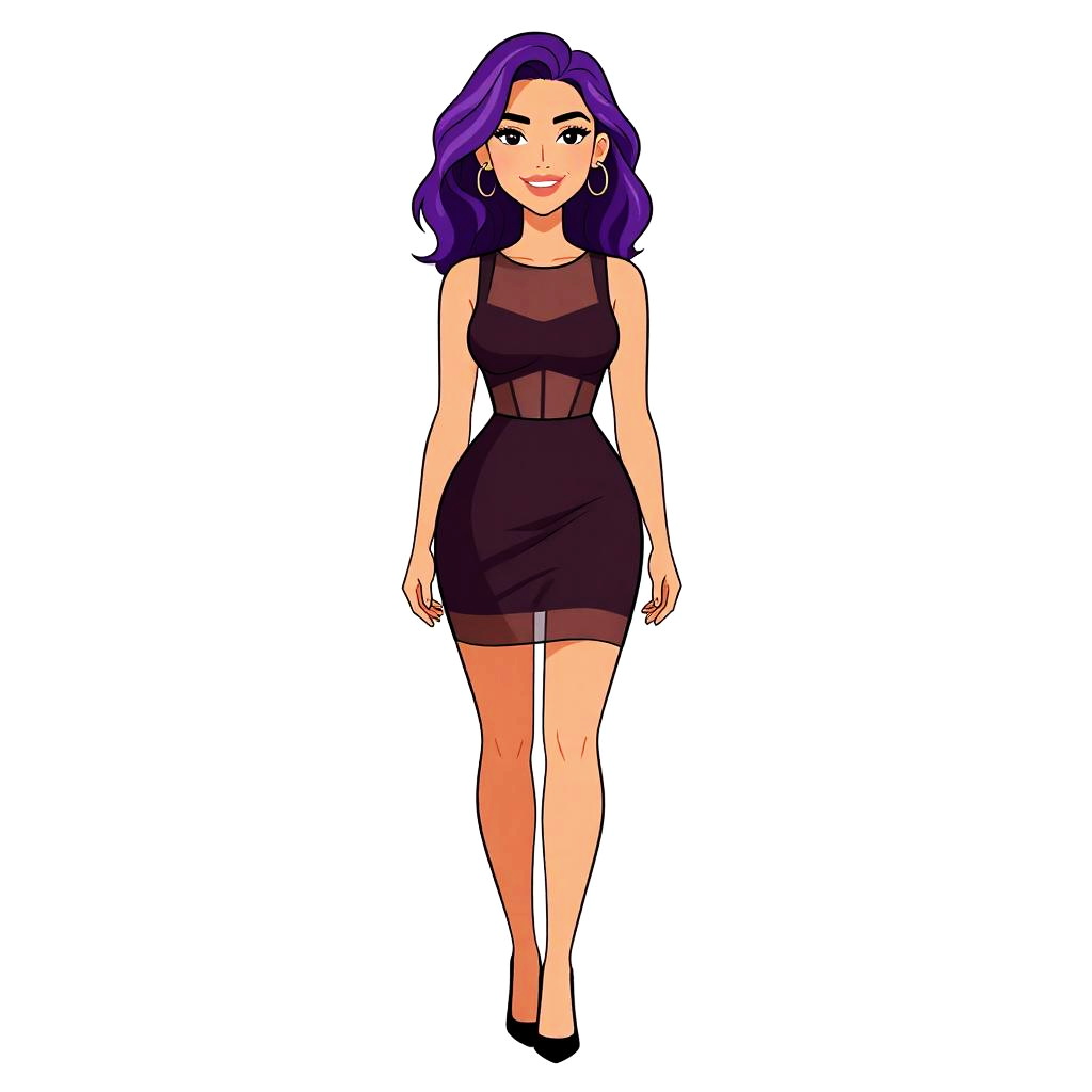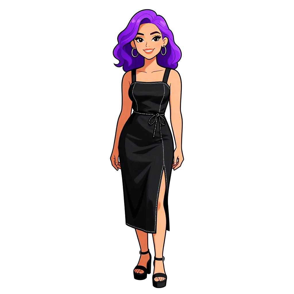 Woman with pretty face and pretty hair. Woman, contemporary chic, metallic finish slip dress in dark gray, V-neck with mesh panel insert, spaghetti straps, draped silhouette, knee-high slit, midi length, black ankle boots, minimalist setting with white wall and floor. --sref 1467