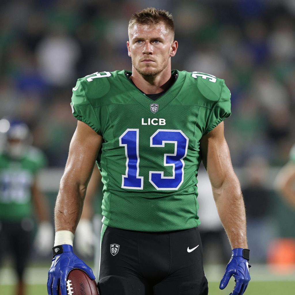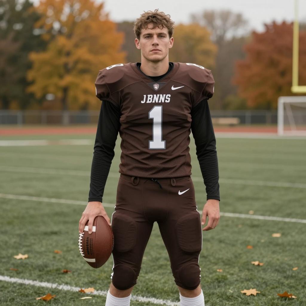 Male Football Player in Brown Uniform Holding Football
