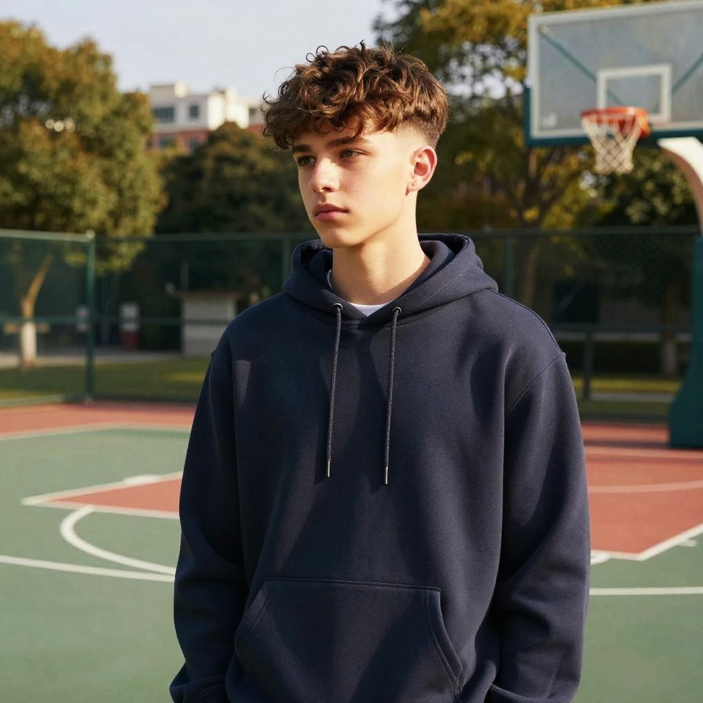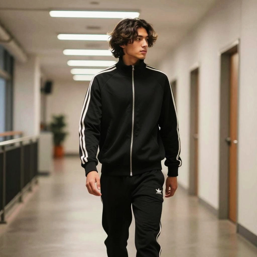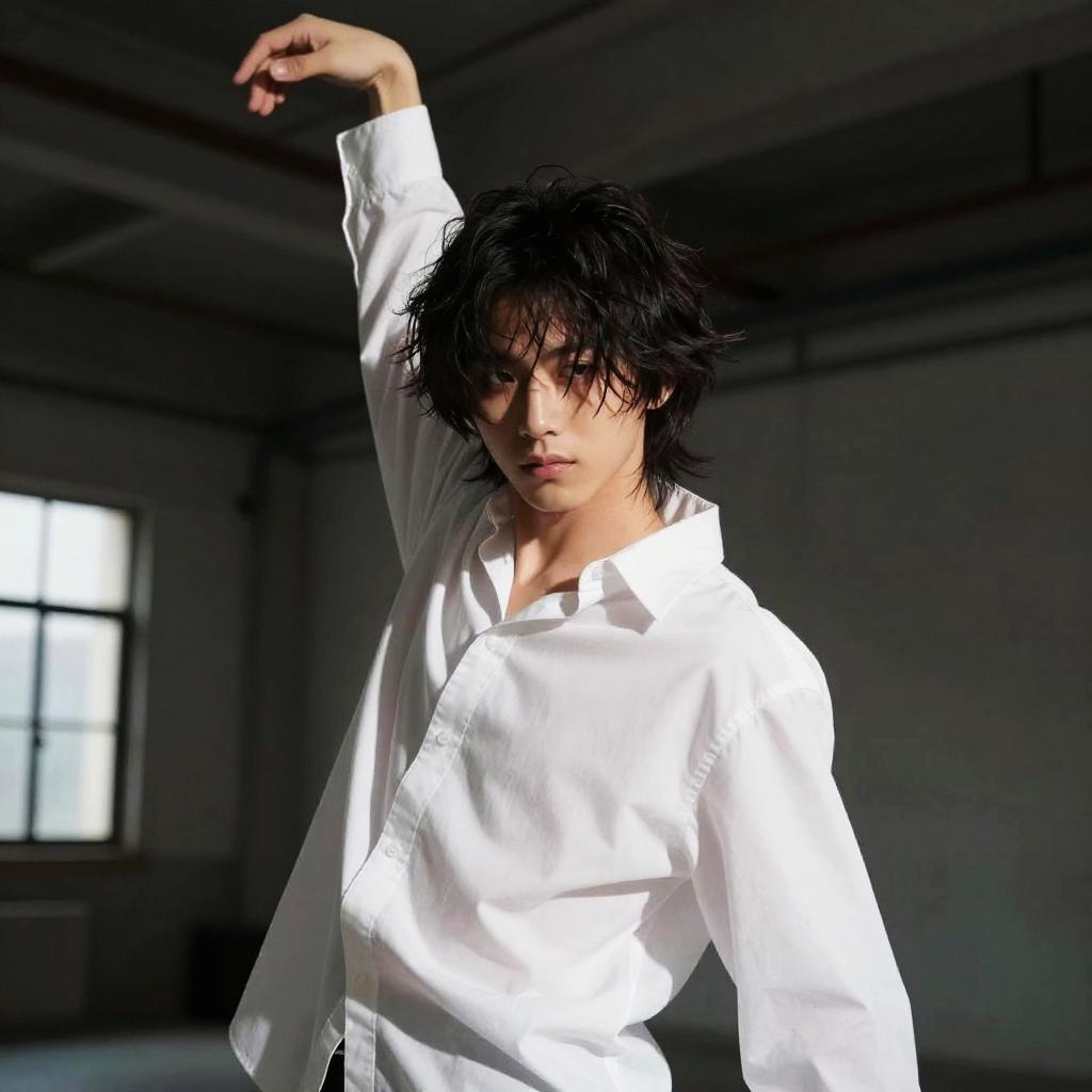 Choppy Layers hairstyle on female model, wearing cut-out black mini dress, in nightclub lounge, captured in fashion editorial style with dramatic colored spotlight.