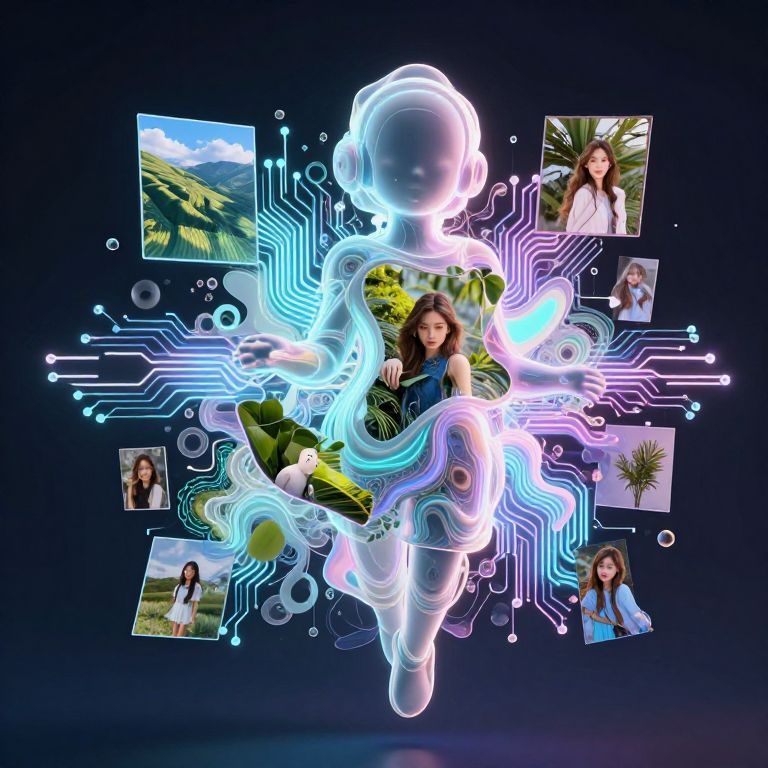 AI image modifier tool visualized as a floating digital entity reshaping photos, morphing shapes and colors in a fluid transformation, glowing circuit patterns intertwined with natural elements, neon and pastel color scheme, ultra detailed and imaginative scene.
