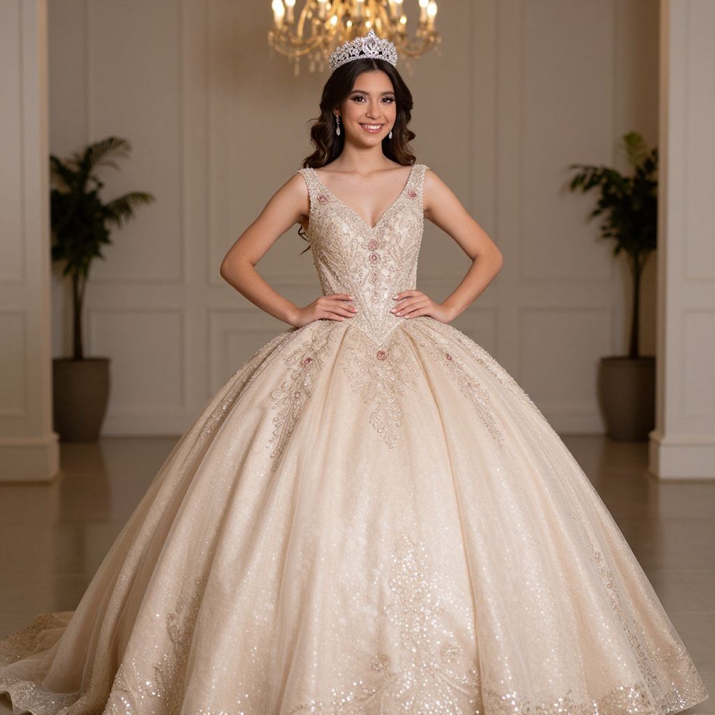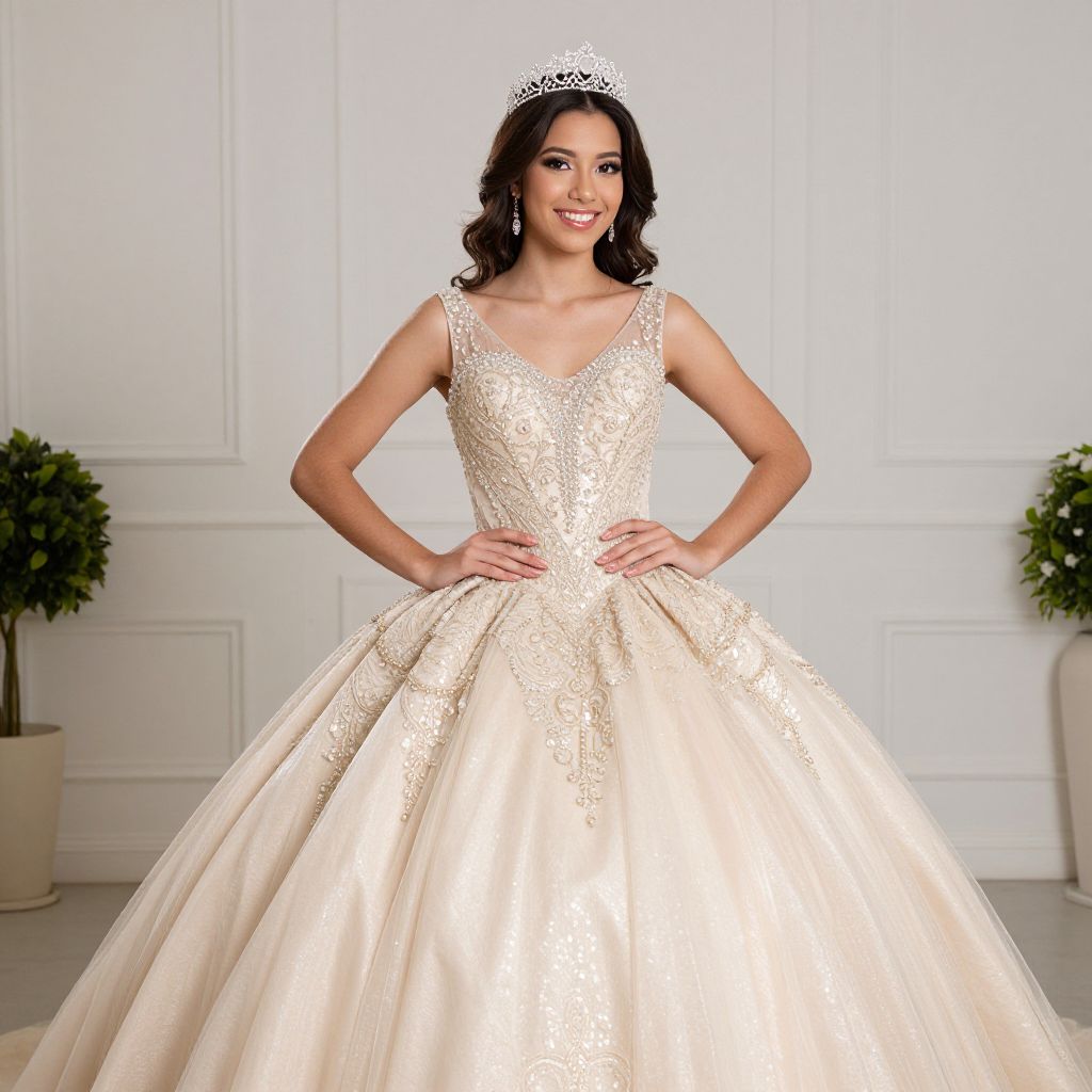 Radiant Quinceañera Champagne Gown