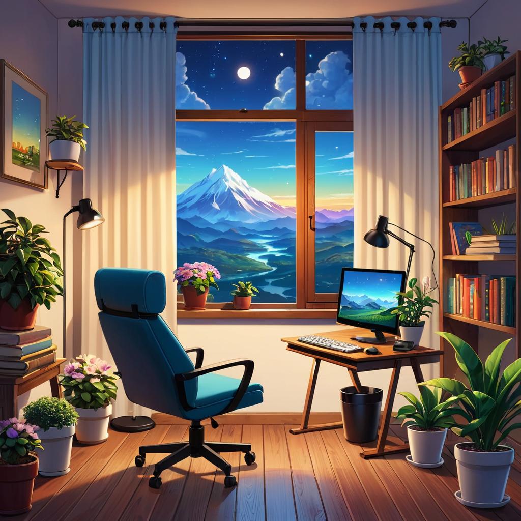 Cozy Home Office with Night View