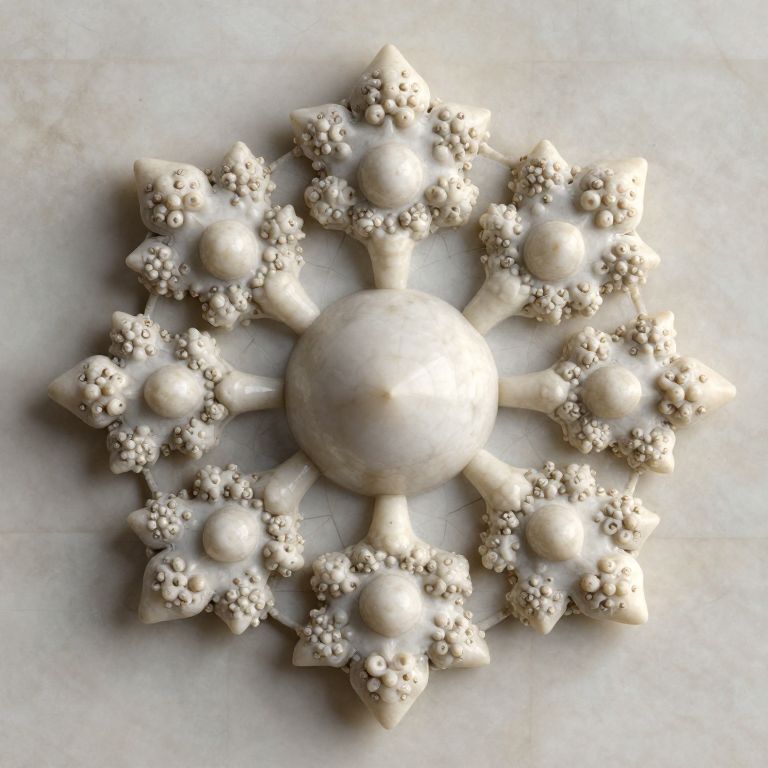 Grainy asymmetrical architectural ornament in marble inspired by mandelbrot fractals, nice warm cool lighting,
