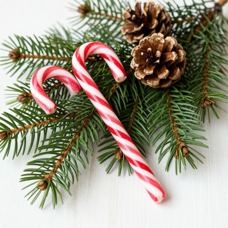 Christmas Pine Branch With Cones And Candy Cane Decor
